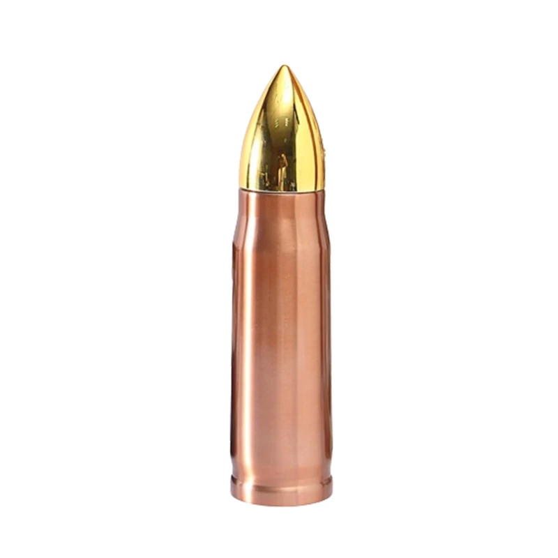 This water bottle is typically made of stainless steel. It typically features a bullet-shaped head design, which not only adds to its aesthetic appeal but also provides a secure grip when holding the bottle.