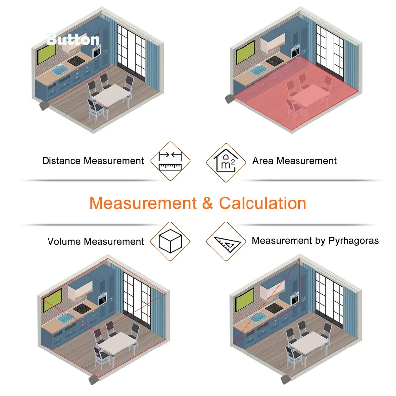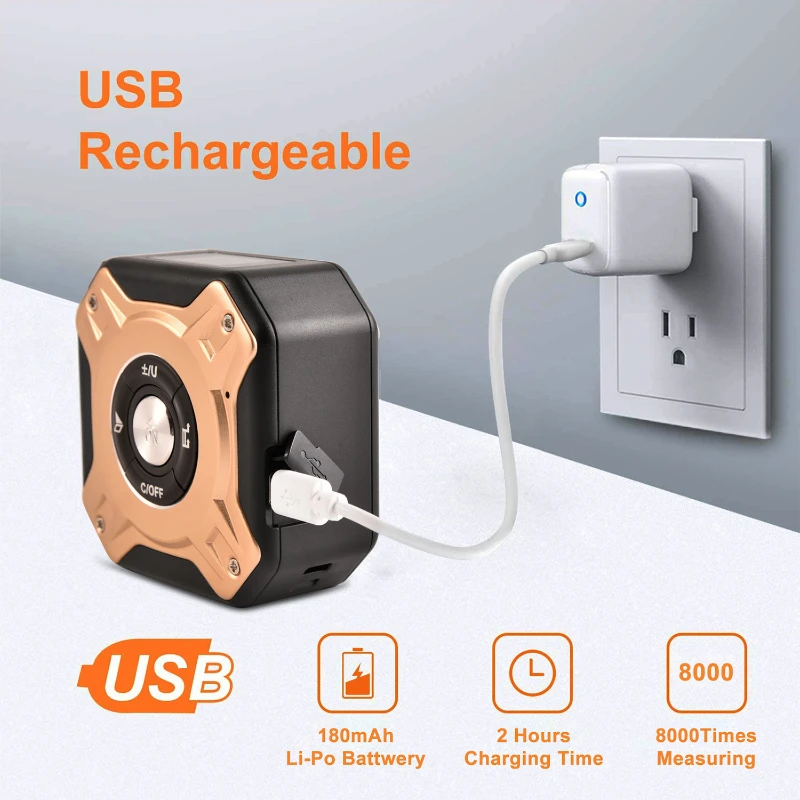 Our Laser Distance Measuring Tape is a versatile tool for precision measurements. Crafted with a blend of alloy and ABS materials, this device is both durable and lightweight. With the convenience of USB charging, the package includes a USB charging cable. The built-in 180mAh Li-Po battery ensures a quick 2-hour charging time, providing approximately 8000 measurements on a single charge. This multifunctional tool combines a 130Ft laser measurement capability with a 16Ft tape measure, offering a 2-in-1 solution for various measuring needs. Its compact size and metal buckle design make it easy to carry with you wherever you go. Whether you’re a professional tradesperson or a DIY enthusiast, our Laser Distance Measuring Tape is your reliable partner for accurate measurements and ultimate conv