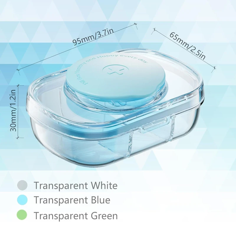 Experience convenience on the go with our Compact Portable Pill Organizer. Constructed with a combination of PC and PP materials for durability and clarity, it measures 3.74 x 2.56 x 1.18 inches, offering a discreet and practical way to carry your medication. The organizer includes a secure snap lid, ensuring your pills stay safe and organized throughout the day. Its transparent design allows for quick identification of contents, simplifying your health regimen. Perfect for daily use, travel, or any time you need your medication handy.