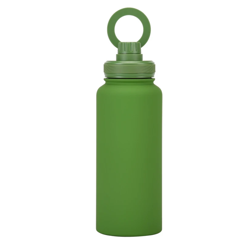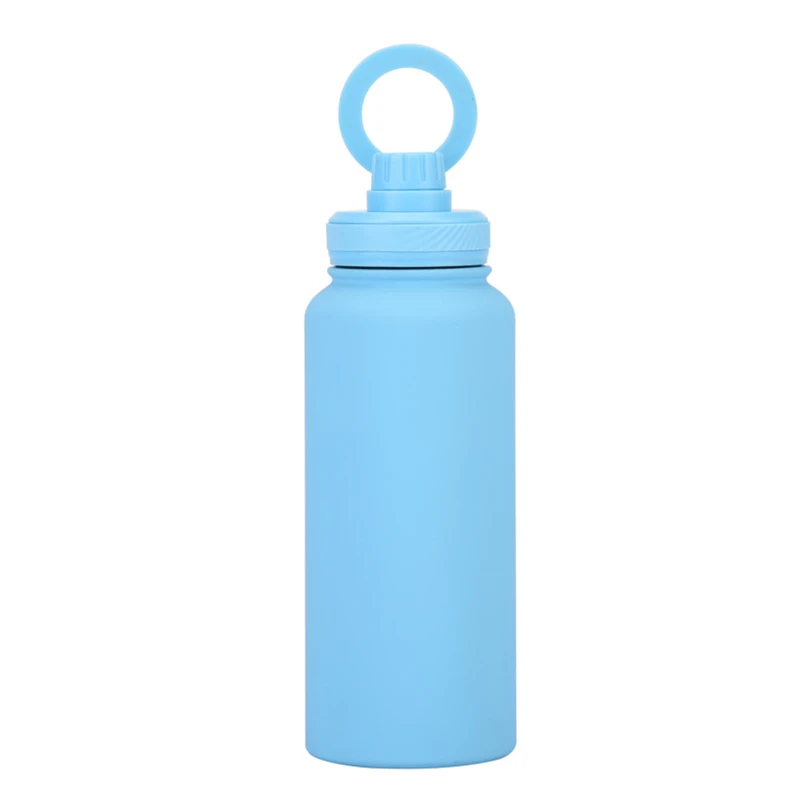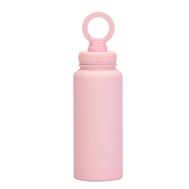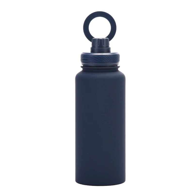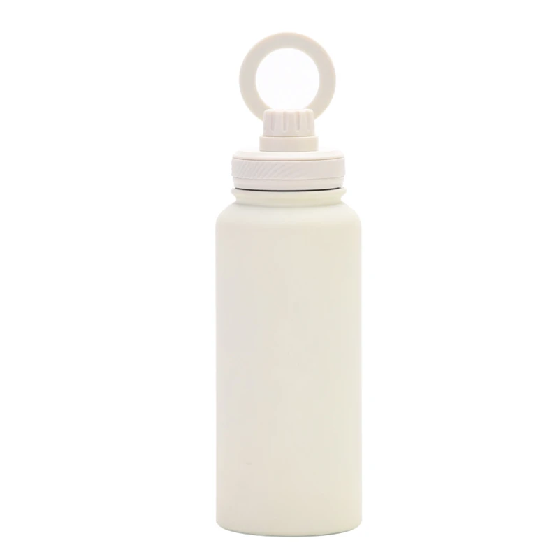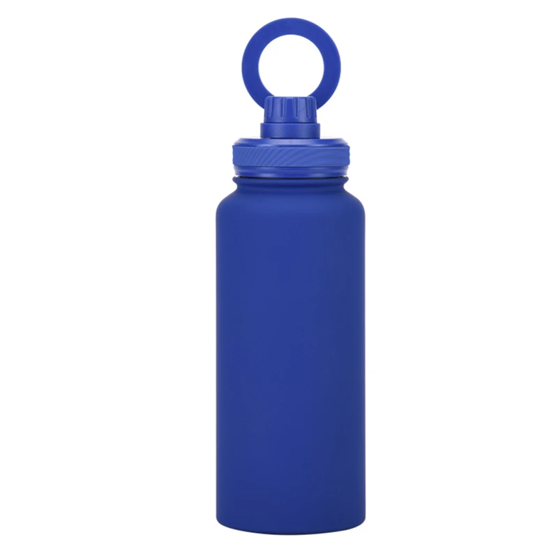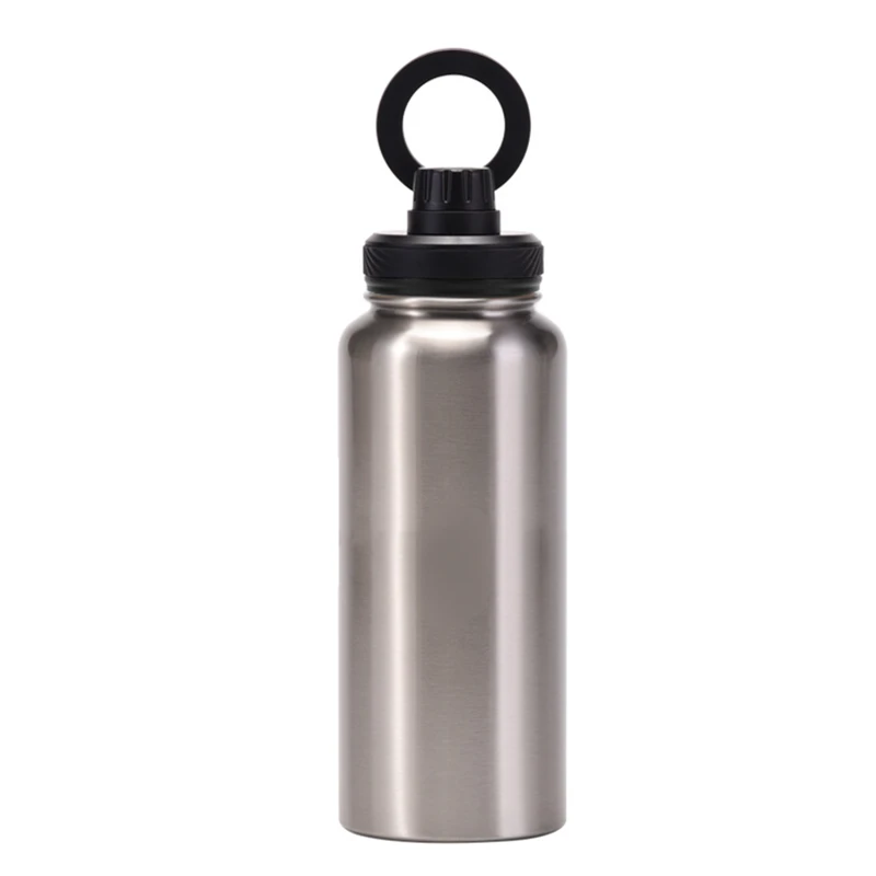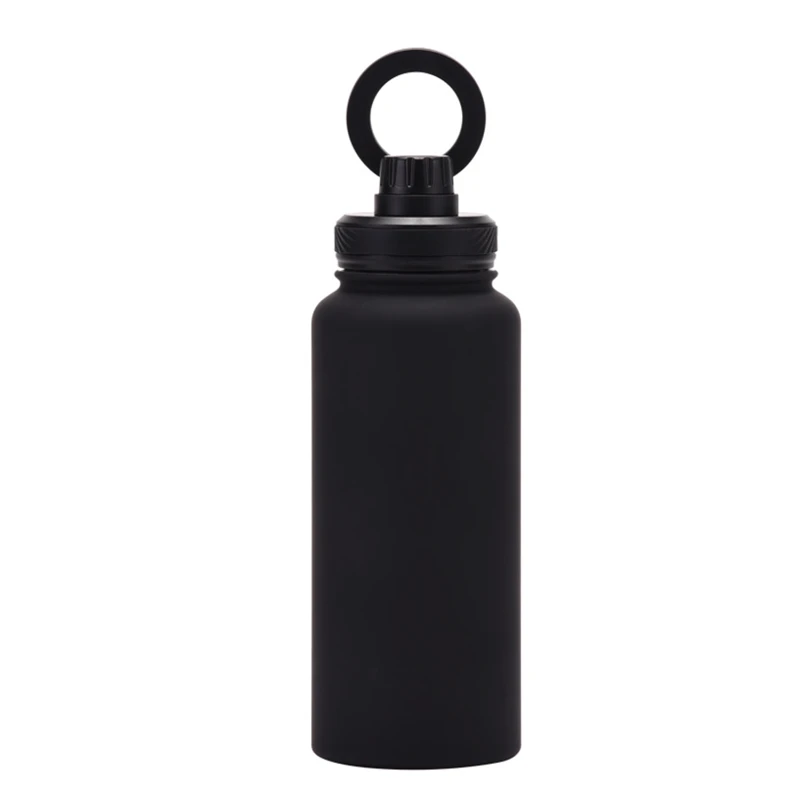 This 34 oz vacuum-insulated stainless steel bottle keeps your beverages hot or cold for hours. Its unique lid features a magnetic ring that securely holds your smartphone, allowing for both portrait and landscape viewing modes. Ideal for outdoor activities, workouts, and daily use.