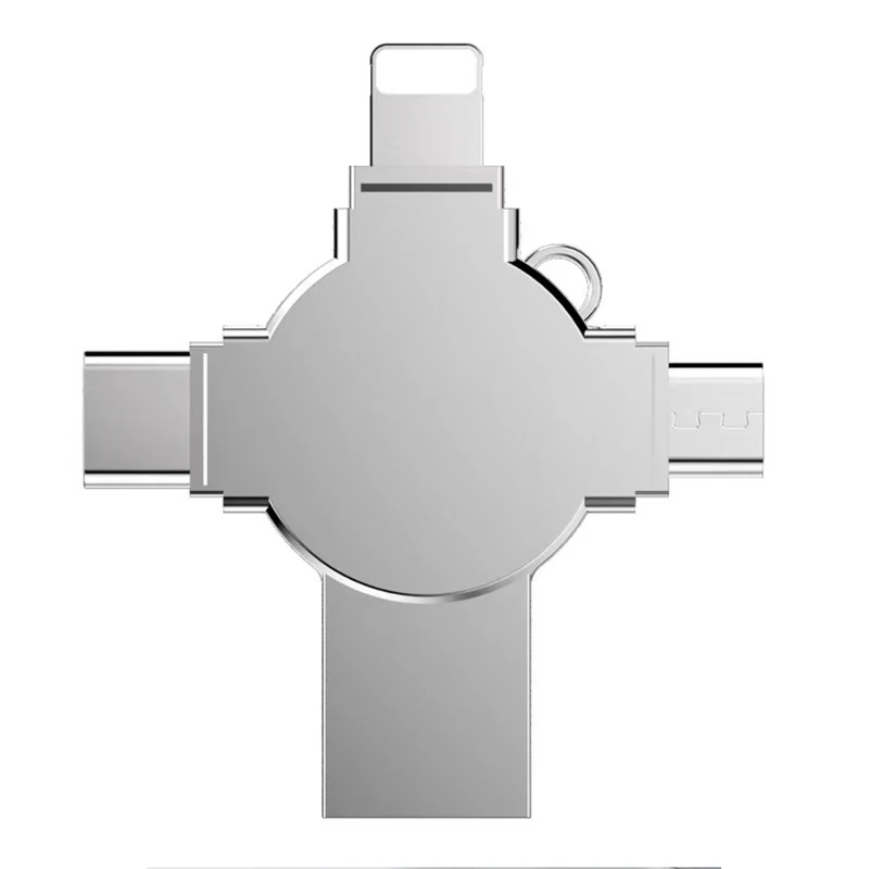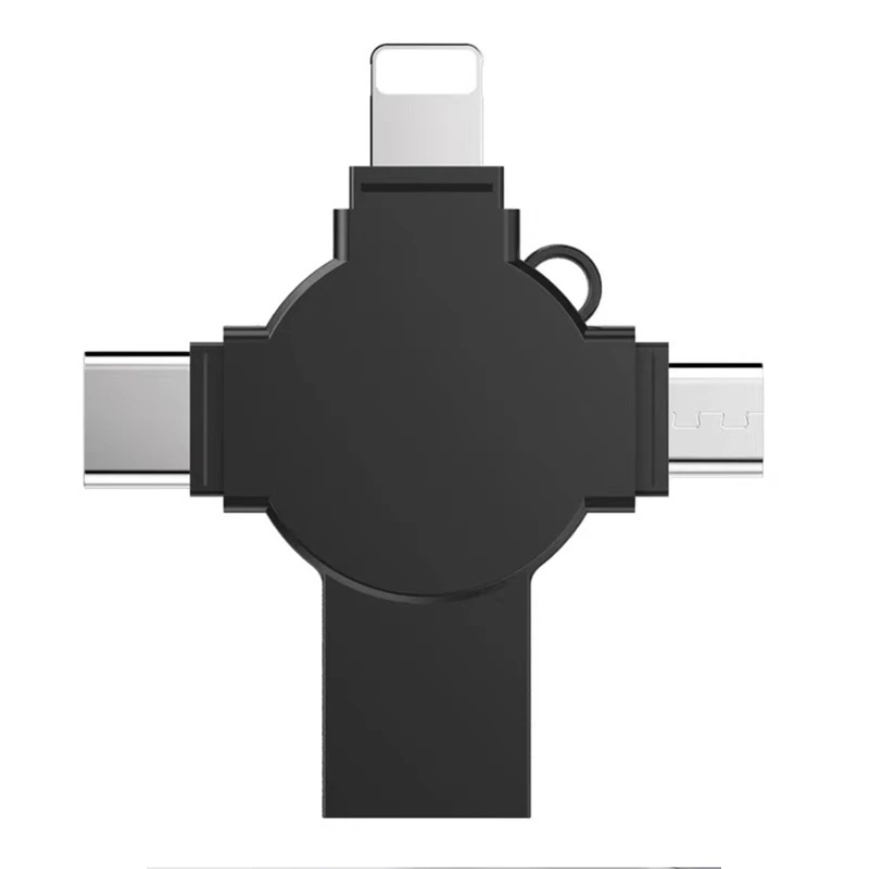 The 4 in 1 High-Speed Transmission Flash Drive is a versatile storage device that offers multiple connection options and fast data transfer speeds. With its 4-in-1 design(Android, Lightning, Type-C, USB), it provides convenient connectivity to various devices and allows for easy file transfers and sharing.