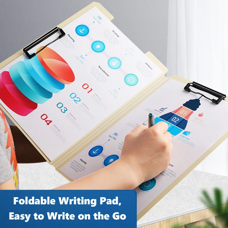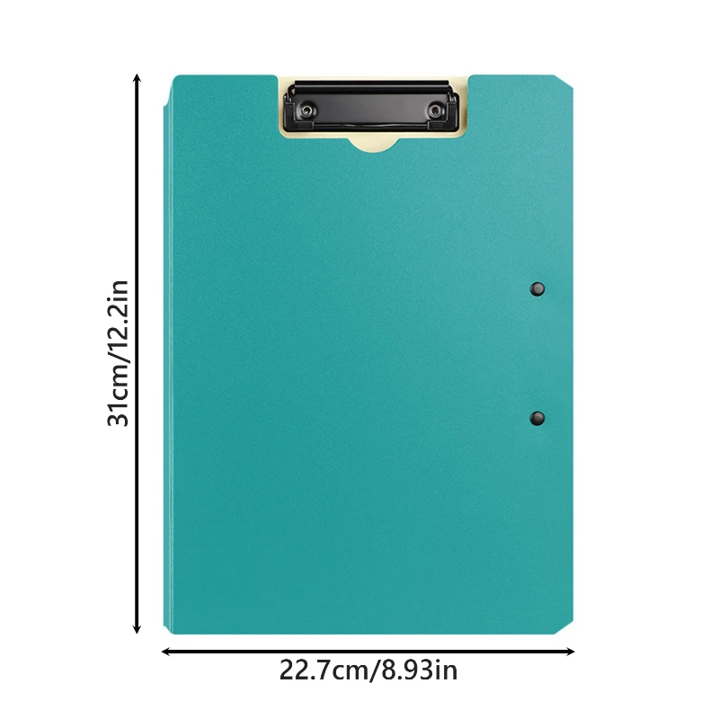 This A4 folding clipboard folder is made from durable PP material with a smooth matte finish. Designed for daily office, school, and field use, it features a heavy-duty metal clip with strong grip that securely holds 1 to 100 A4 sheets. The foldable design provides a firm writing surface while keeping documents neatly protected. Waterproof and stain-resistant, it helps safeguard papers on the go. Size is approximately 12.2 x 8.93 inches. Ideal for meetings, training, exams, presentations, and events. Available in Dark Green, Pink, Beige, Light Blue, Dark Blue, Red, Black, Purple, Light Green, and Green.