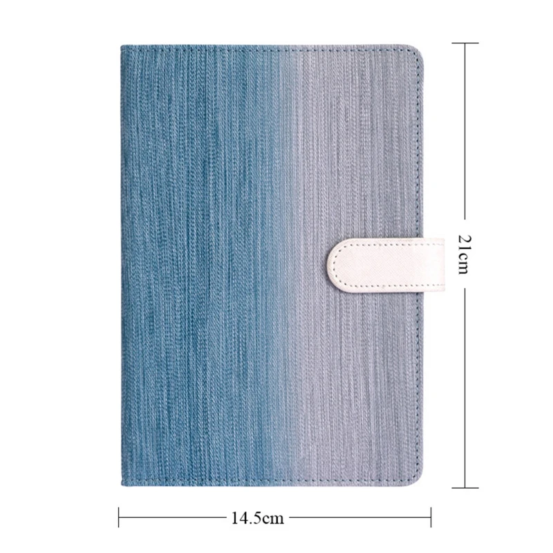 This A5 notebook features a stylish gradient color PU leather cover with a soft texture and durable finish. Measuring 8.26 × 5.7 inches, it includes 200 pages of 100 gsm lined paper that resists ink bleed and provides a smooth writing experience. The built-in pen holder and secure magnetic closure offer added convenience for daily use. Perfect for students, professionals, and creative projects, this colorful notebook adds elegance and vibrancy to any workspace.