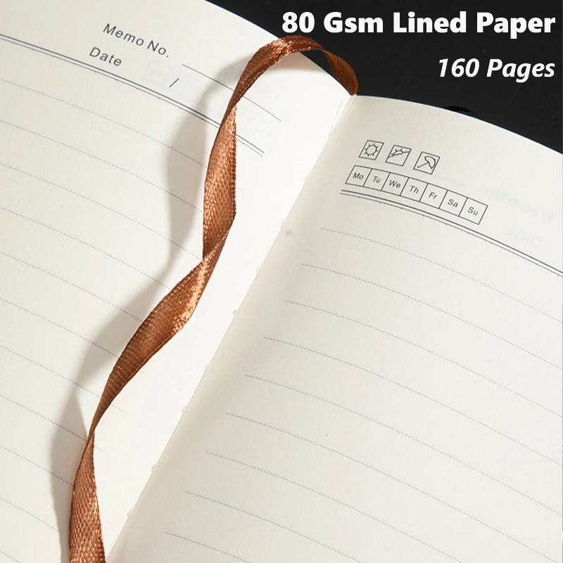 This A5 business notebook features a stylish UV-printed pattern on a soft faux leather cover for a modern and elegant look. Measuring 8.26 × 5.74 inches, it includes 160 pages of 80 gsm lined paper that offers a smooth and comfortable writing experience. The PU leather is durable, wear-resistant, and easy to clean. A built-in ribbon bookmark adds convenience for everyday use. Perfect for office work, meetings, journaling, or as a premium corporate gift.