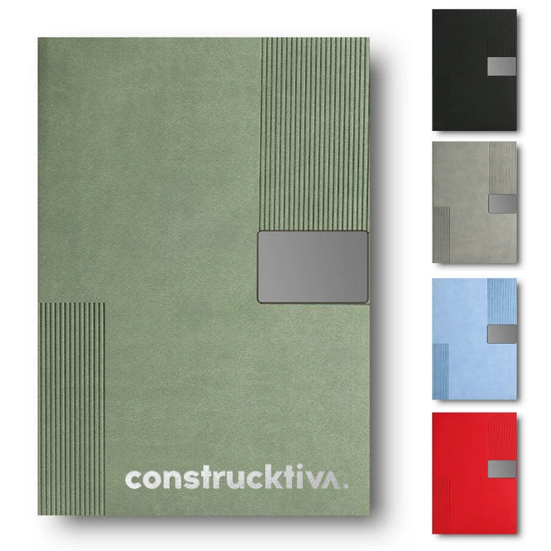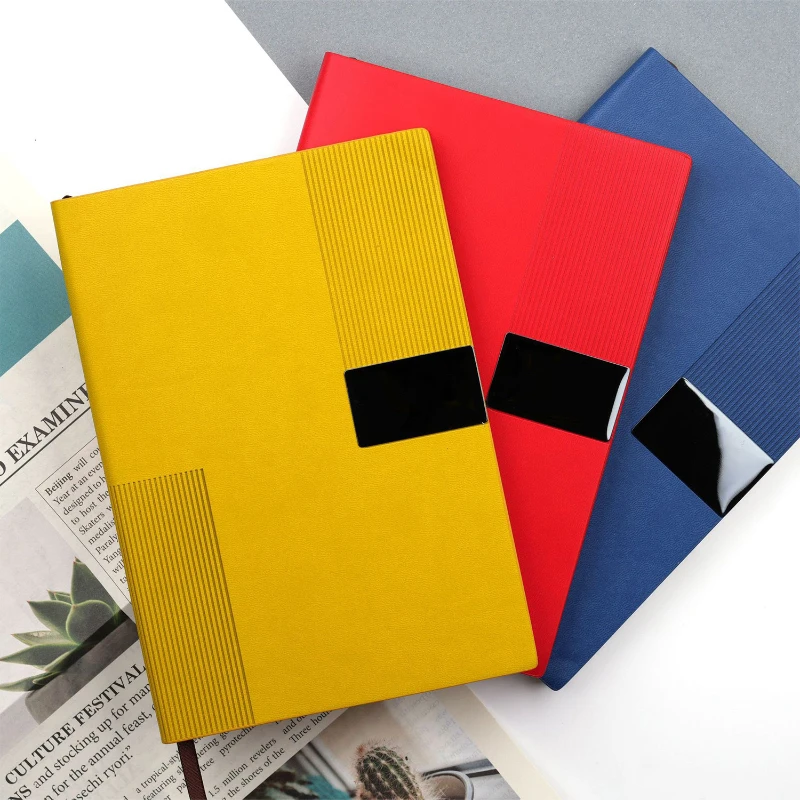This A5 business notebook features a refined PU leather cover with a modern striped texture and sleek metal accent. Measuring 8.26 × 5.7 inches, it includes 200 pages of 100 gsm lined paper that provides a smooth writing experience without ink bleed. The durable leather cover offers a professional look suitable for office, meetings, and daily note-taking. Available in multiple elegant colors, it’s an excellent choice for corporate gifts, branding, or personal organization.