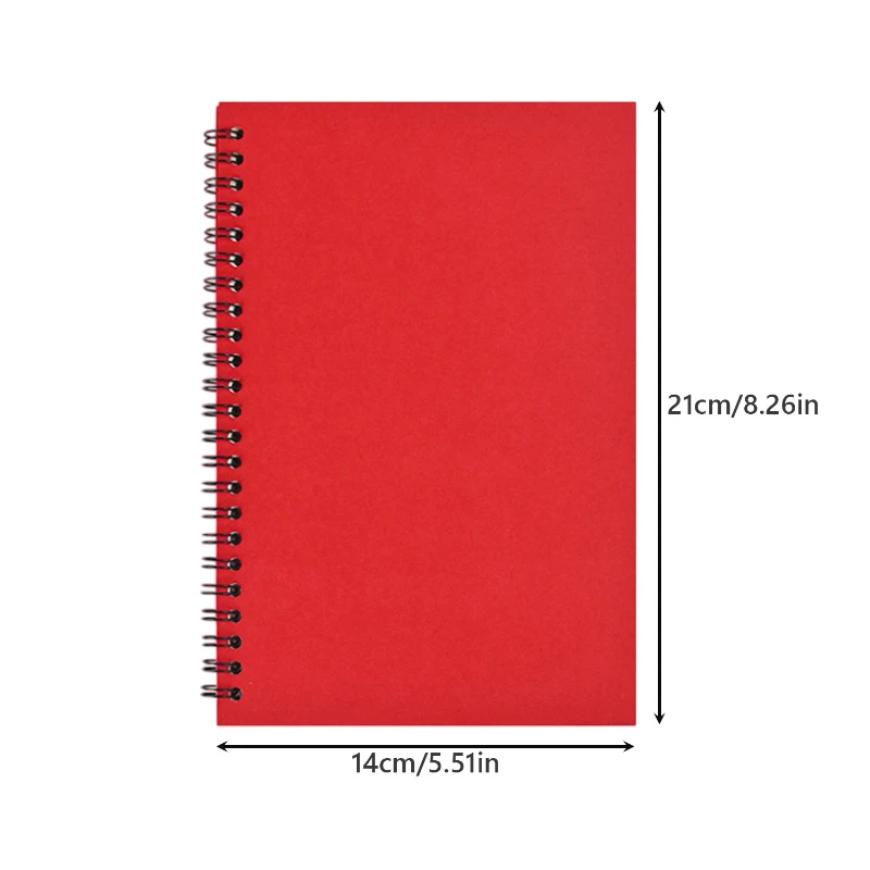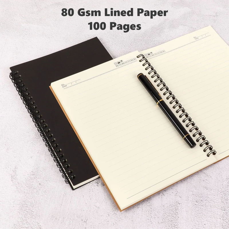 This A5 spiral notebook measures 5.51 x 8.26 inches and features a sturdy 350 gsm paperboard cover for a clean, durable look. It includes 100 pages (50 sheets) of 80 gsm lined paper with 8 mm spacing, providing smooth writing and organized note-taking. The strong wire binding allows the notebook to lay flat for comfortable use. Available in multiple colors, it is ideal for office work, school, meetings, or promotional branding.