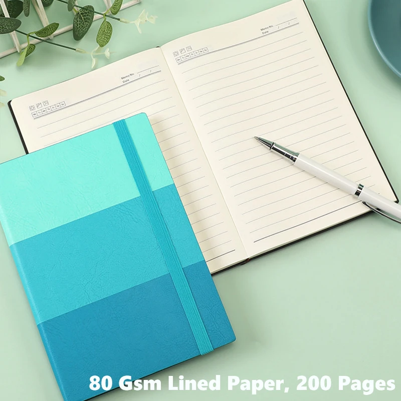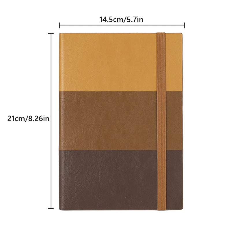 This A5 notebook features a minimalist tri-color block design crafted from premium PU leather for a sleek and modern appearance. Measuring about 5.7 x 8.3 inches, it includes 200 pages of 80 gsm lined paper, ideal for daily writing, journaling, or meeting notes. The elastic band closure keeps pages secure, making it a reliable companion for business professionals, students, or creative users. Available in multiple stylish color combinations, it’s perfect for branding, promotions, or corporate gifting.