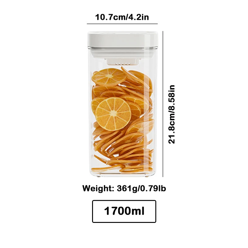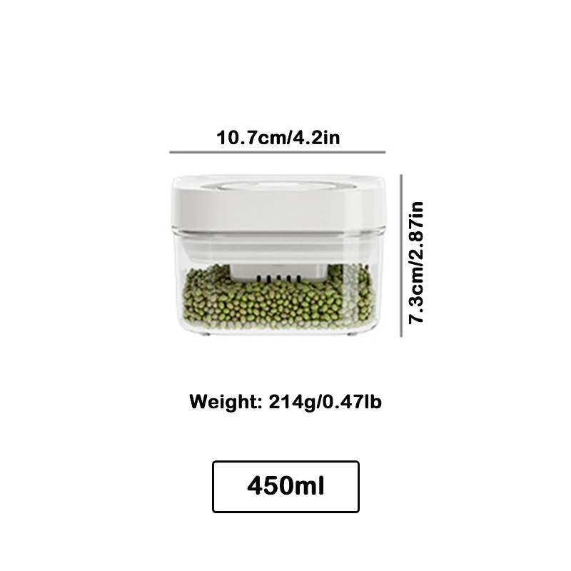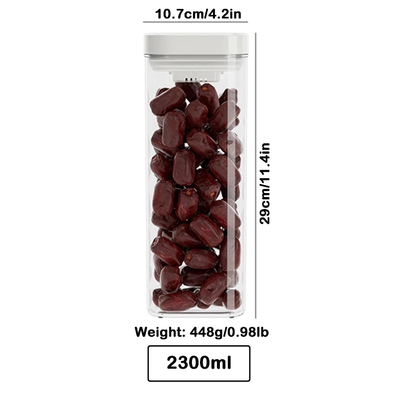 This Airtight Storage Container is engineered to maintain the freshness of your food with its innovative push-button lid and built-in manual date tracker. The body is crafted from durable PET plastic, while the lid features a sturdy combination of ABS and stainless steel, ensuring long-lasting performance. Made from food-grade materials, it is BPA-free for safe food storage. Designed to be stackable, it maximizes space in your kitchen or pantry. Ideal for storing dry goods, the airtight seal locks out moisture and air. Available in four convenient sizes ranging from 450ml to 2300ml, this container provides a versatile and space-efficient storage solution.