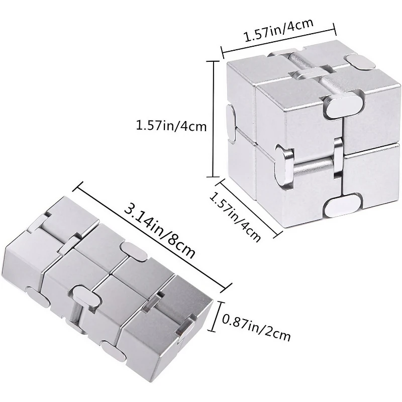 Unleash your creativity with the Aluminum Alloy Infinity Cube Fidget Toys! This fascinating puzzle cube offers endless possibilities for configuration with its unique design. Each cube measures a compact 1.57 x 1.57 x 1.57 inches, perfect for on-the-go challenges. Constructed from high-quality alloy, it’s both sturdy and stylish, available in vibrant blue, bold red, and sleek silver colors. The cube’s hinges allow for smooth transformations, providing a tactile and visual experience that’s both engaging and stimulating. Whether for brain training or as a desk accessory, this cube is sure to capture the attention and imagination of puzzle enthusiasts of all ages.