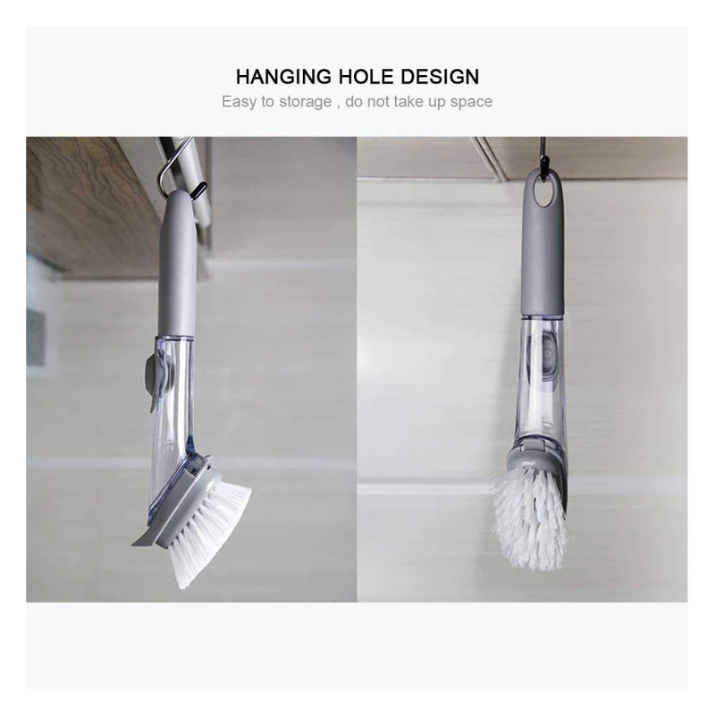 The bristles of the brush are made from durable and flexible materials, ensuring effective scrubbing without scratching or damaging surfaces. The Automatic Liquid Filling Kitchen Cleaning Brush is equipped with a reservoir that can be filled with your preferred cleaning solution. Simply press the button on the handle, and the brush dispenses the perfect amount of liquid onto the bristles. This eliminates the need for separate sprays or bottles, saving you time and effort.