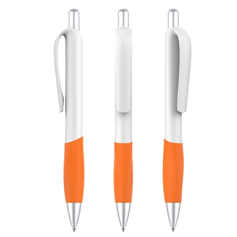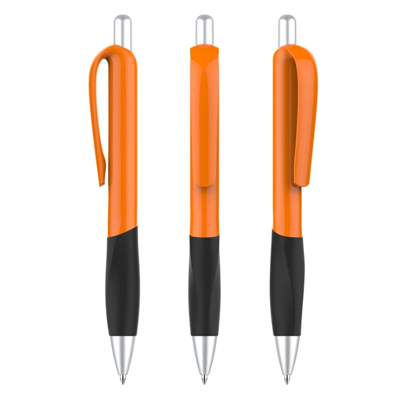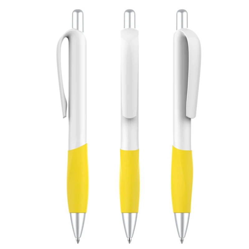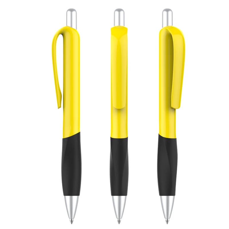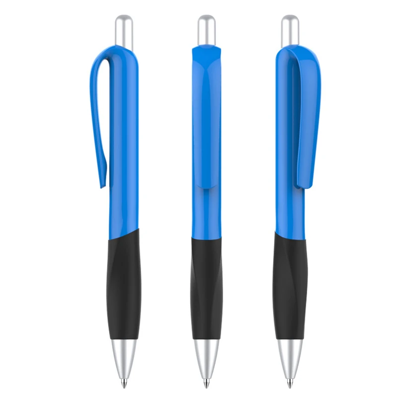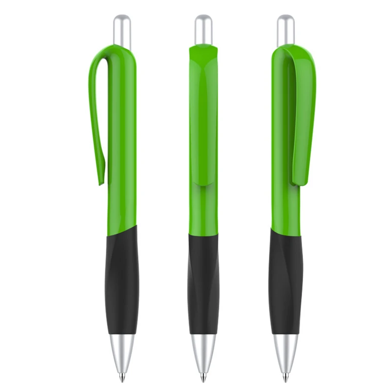 Designed with a vibrant plastic barrel and a contoured rubber grip, this pen ensures both style and comfort during extended writing sessions. The sturdy click mechanism allows for quick and easy use, making it an ideal choice for office tasks, school assignments, or promotional giveaways. Available in a range of bright colors, this pen combines functionality with a modern design, making it a must-have stationery item.