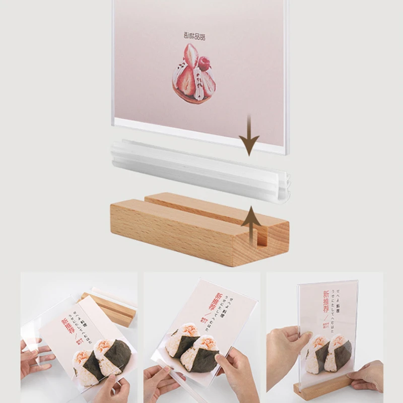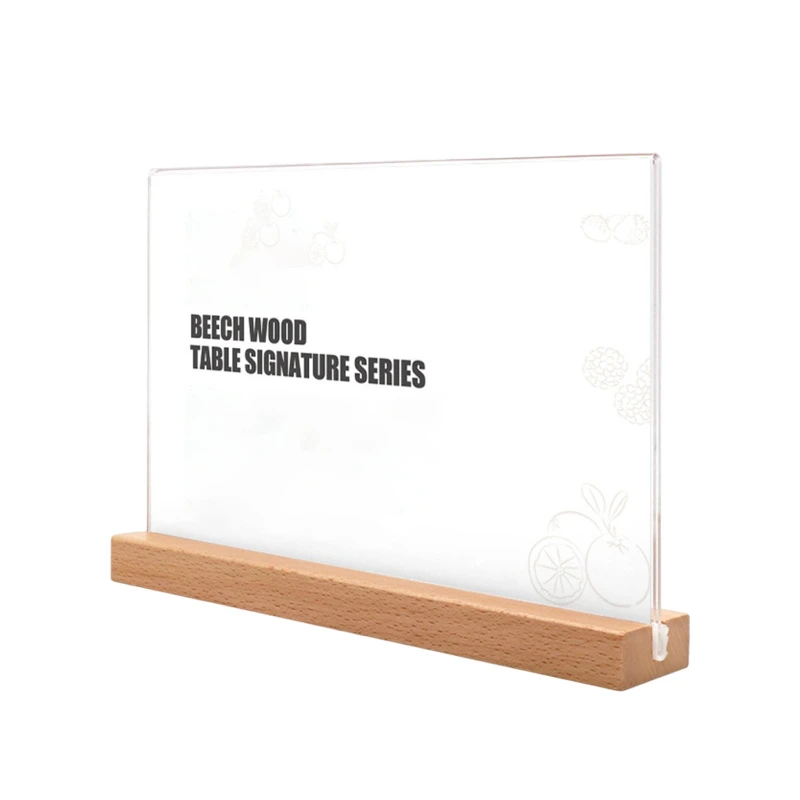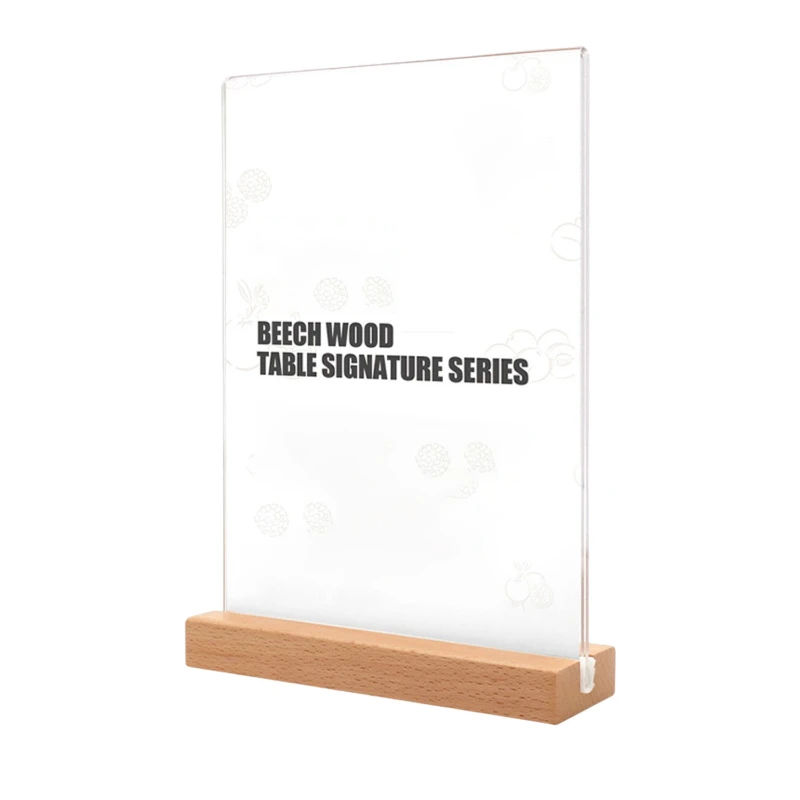 Crafted from durable acrylic and premium European beech wood, this dual-sided display stand is available in both vertical and horizontal orientations. Vertical sizes include 8.27″ x 11.69″, 5.83″ x 8.27″, and 5.91″ x 3.94″. Horizontal sizes include 8.27″ x 11.69″, 5.83″ x 8.27″, 7.87″ x 3.94″, and 5.91″ x 3.94″(The size here is the insert size). The beech wood base can be customized with laser-engraved logos, offering a personalized touch. Easy to assemble, this stand ensures your displays are presented in a professional and stylish manner, making it ideal for restaurants, cafes, offices, and retail settings. The prices on the website are for the 8.27″ x 11.69″ vertical and horizontal options. For other sizes please contact us.