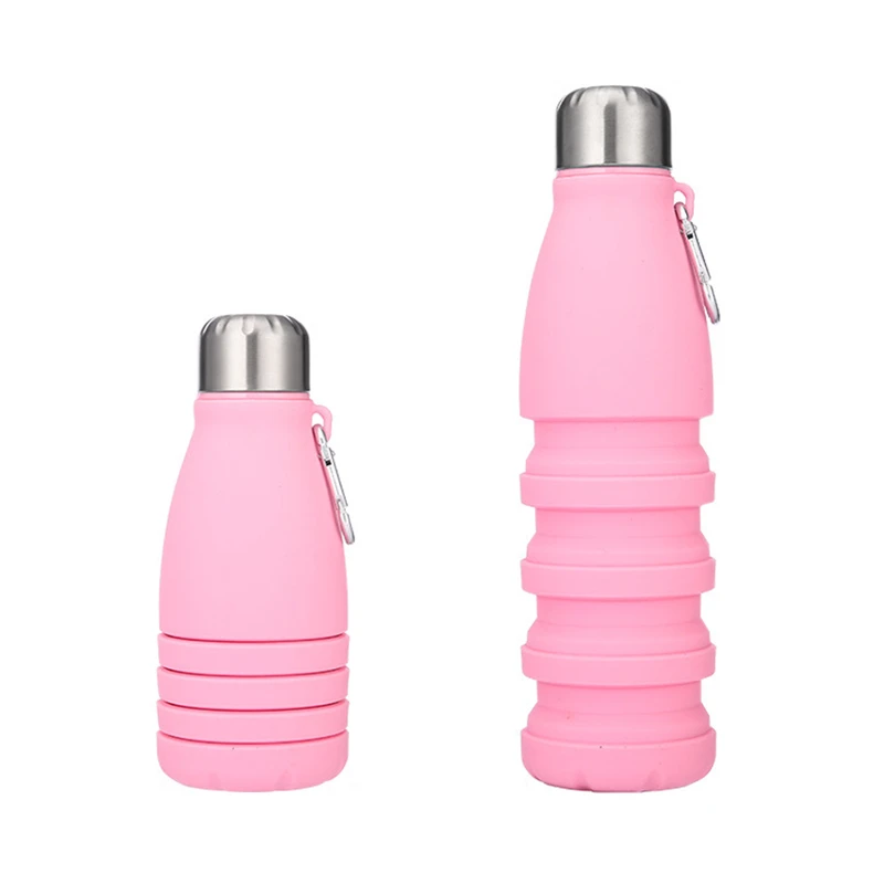 Made from high-quality, food-grade silicone, this 18.6oz bottle is safe, non-toxic, and durable. It features a leak-proof stainless steel lid and a wide mouth for easy drinking and cleaning. The bottle can be collapsed from 9.84 inches to 6.69 inches for compact storage, and the integrated carabiner clip allows for easy attachment to bags or backpacks. This bottle is ideal for hiking, camping, gym, and everyday use. For optimal use, clean before first use and store in a clean, dry place away from direct sunlight.