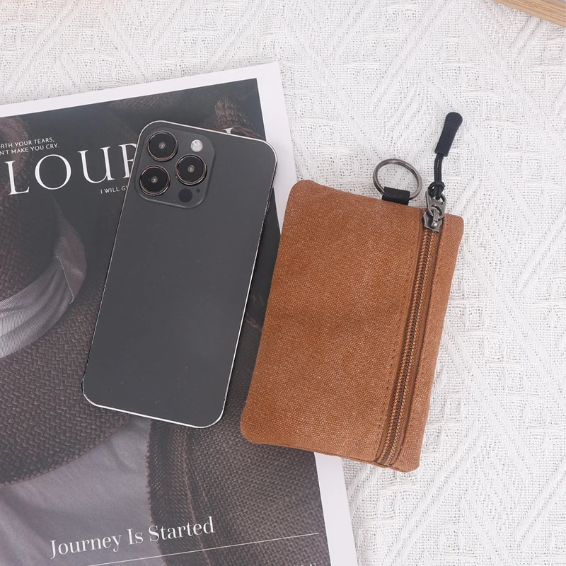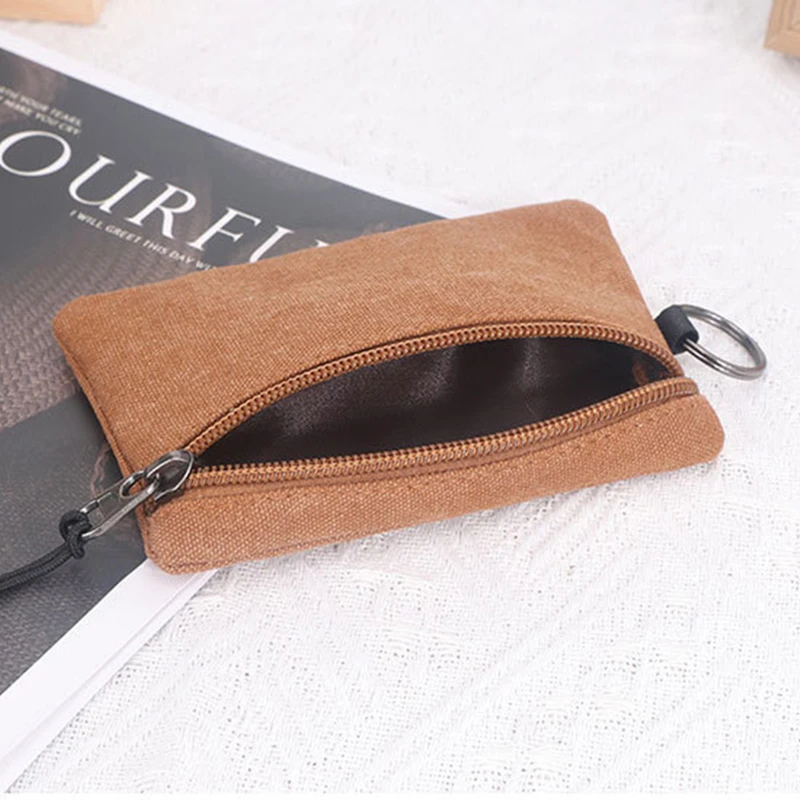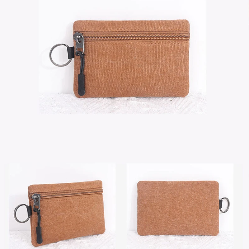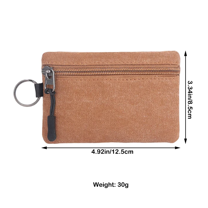 This compact canvas pouch is an ideal solution for securely storing coins, keys, and small essentials. Made from high-quality, washed canvas fabric, it offers a soft yet durable texture. The pouch features a sturdy zipper closure and a keyring attachment for added convenience. Measuring approximately 4.92 inches by 3.34 inches and weighing just 0.07 pounds, it’s lightweight and portable, perfect for daily use or travel. Available in multiple earth-tone colors, this pouch combines practicality with style, making it a versatile accessory for anyone on the go.