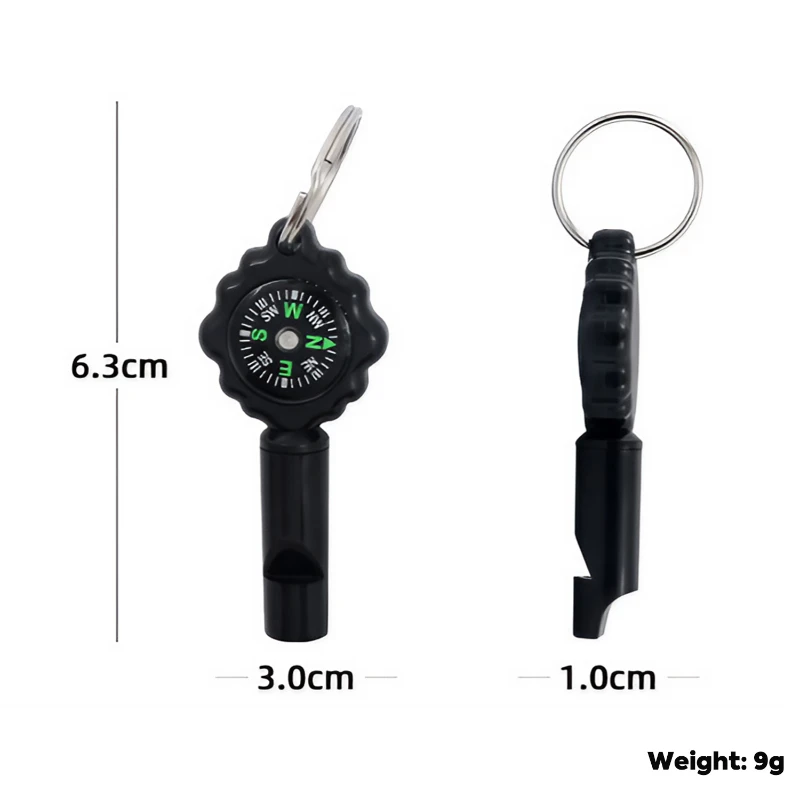This Compact Survival Whistle with Compass is an essential tool for outdoor adventures. Featuring a durable ABS shell, a precise built-in compass for navigation, and a clear, loud whistle for emergencies, it ensures safety in challenging environments. Its lightweight design, measuring 2.5 inches long and weighing just 0.32 ounces, makes it easy to carry with an alloy keyring for attachment to bags or keychains. Ideal for camping, hiking, and outdoor survival, this two-in-one device combines practicality and portability, making it a must-have for explorers.