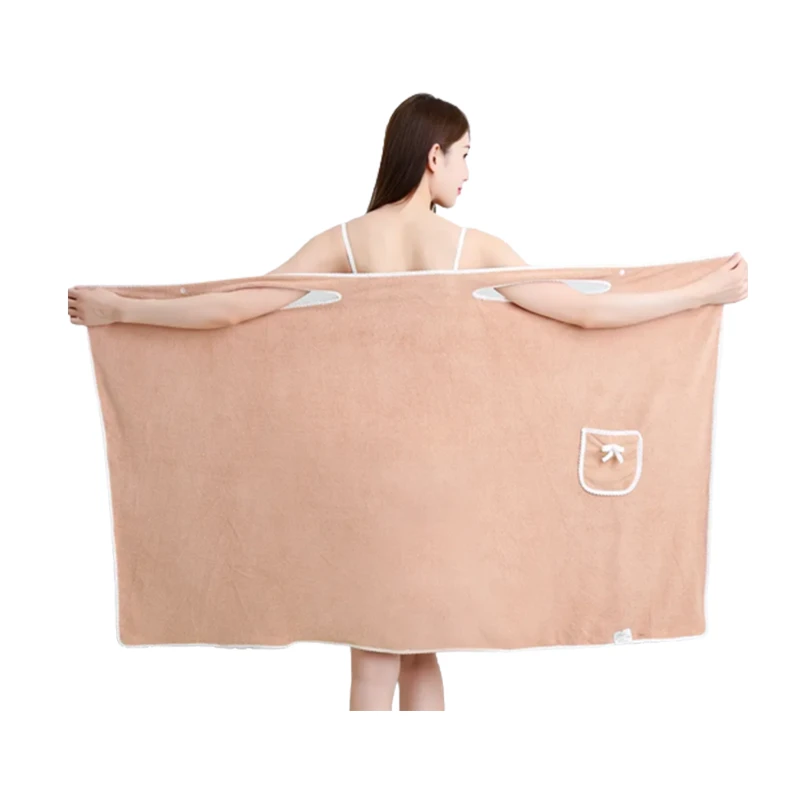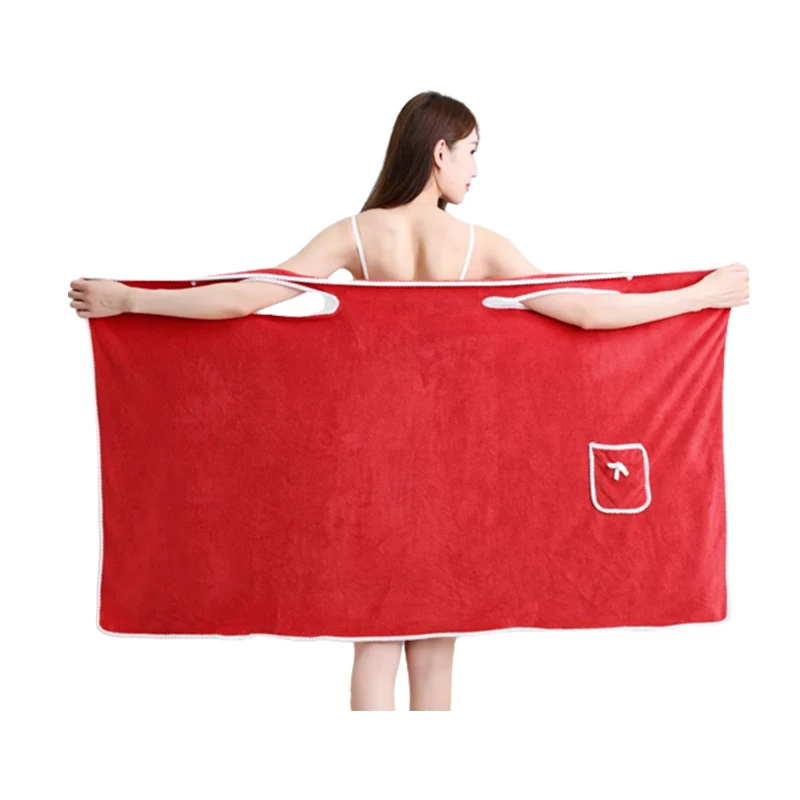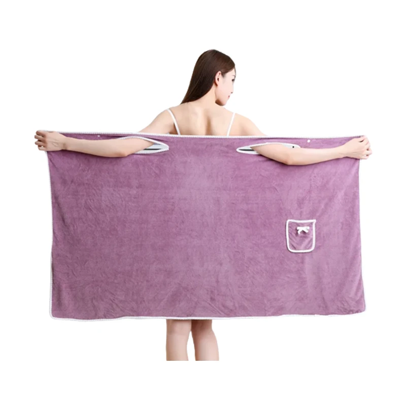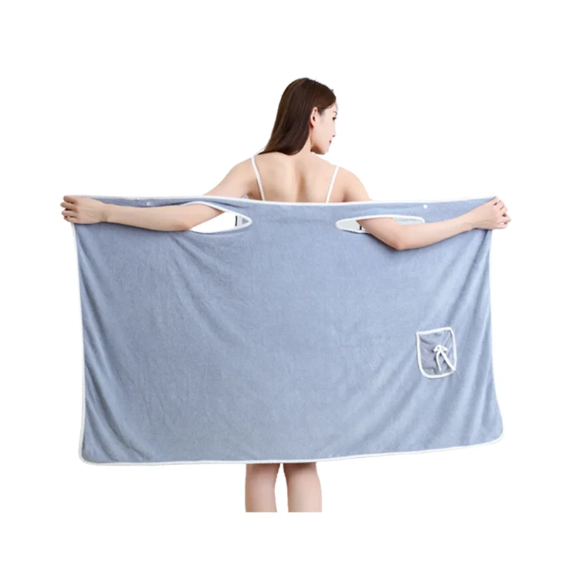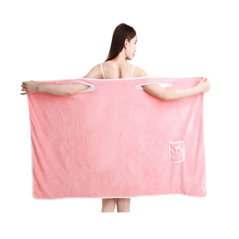 This bath towel is made from soft and absorbent coral fleece fabric, providing a plush and comfortable feel against the skin. The unique design features a built-in wearable design, allowing you to wrap the towel around your body and secure it in place with adjustable buttons.It allows you to keep your hands free while getting ready, making it convenient for applying makeup, blow-drying your hair, or simply relaxing around the house.