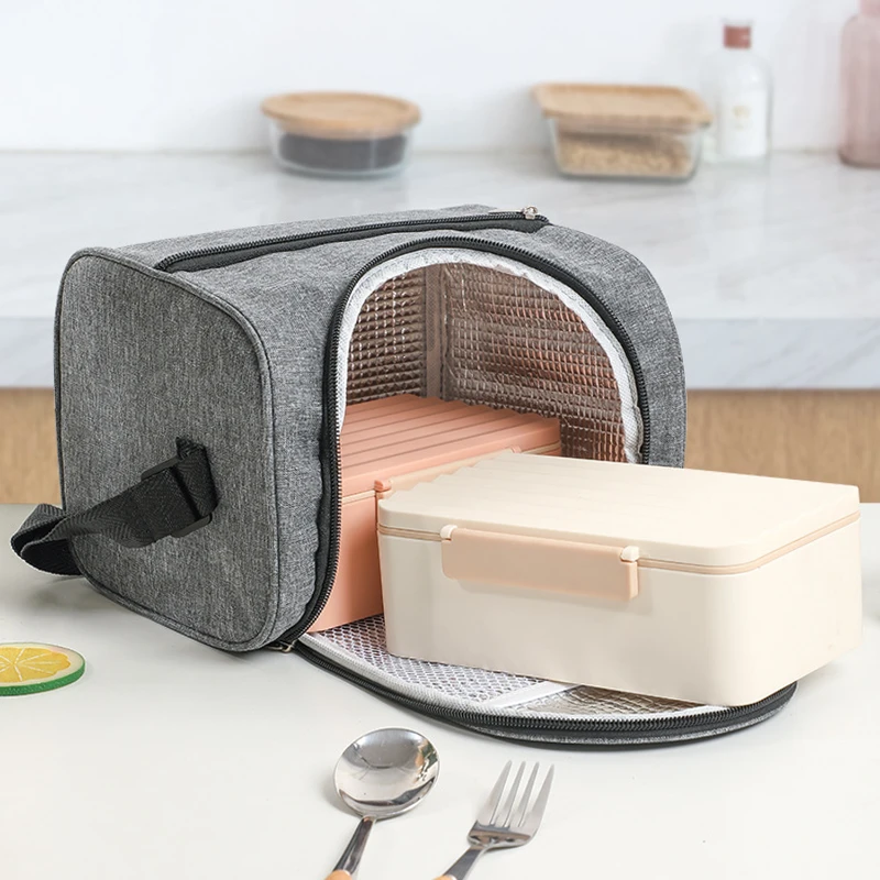 This bag is crafted with a durable, woven fabric and lined with thick aluminum foil to ensure food remains at the desired temperature, whether hot or cold. Its compact dimensions make it easy to carry, while still boasting a sufficient internal capacity to store standard lunch containers and drinks. The bag features a robust zipper closure, an external pocket for additional small items, and an adjustable shoulder strap, making it highly versatile for daily use or occasional outdoor picnics.