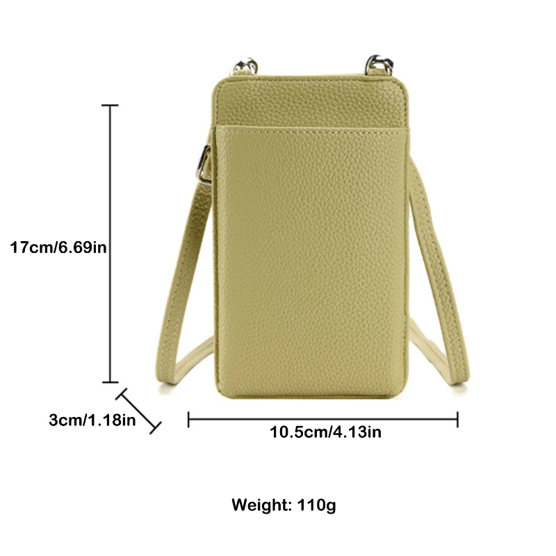 This versatile crossbody phone bag is designed with both style and functionality in mind. Made from premium PU leather, it offers a sleek and durable finish. The bag features a front open pocket, perfect for quick access to your phone, and a secure zippered compartment on the back for safely storing credit cards, cash, or other small essentials. Measuring 6.69 inches by 4.13 inches with a depth of 1.18 inches and weighing 0.24 pounds, this bag is compact yet spacious enough to keep your essentials organized. With an adjustable strap for comfortable hands-free wear, it’s an ideal companion for daily use, travel, or casual outings. Available in a range of elegant colors to match any outfit.