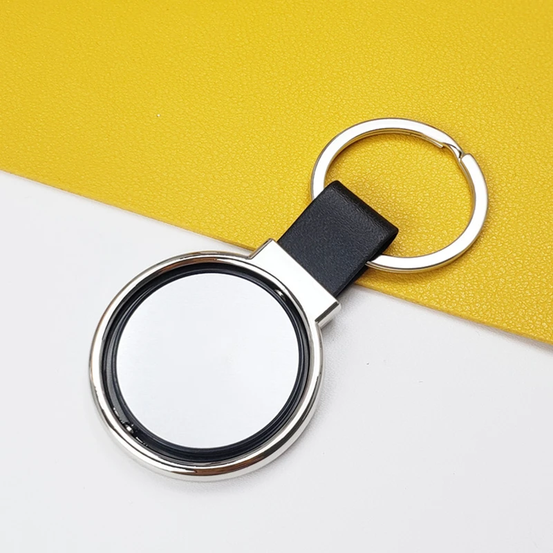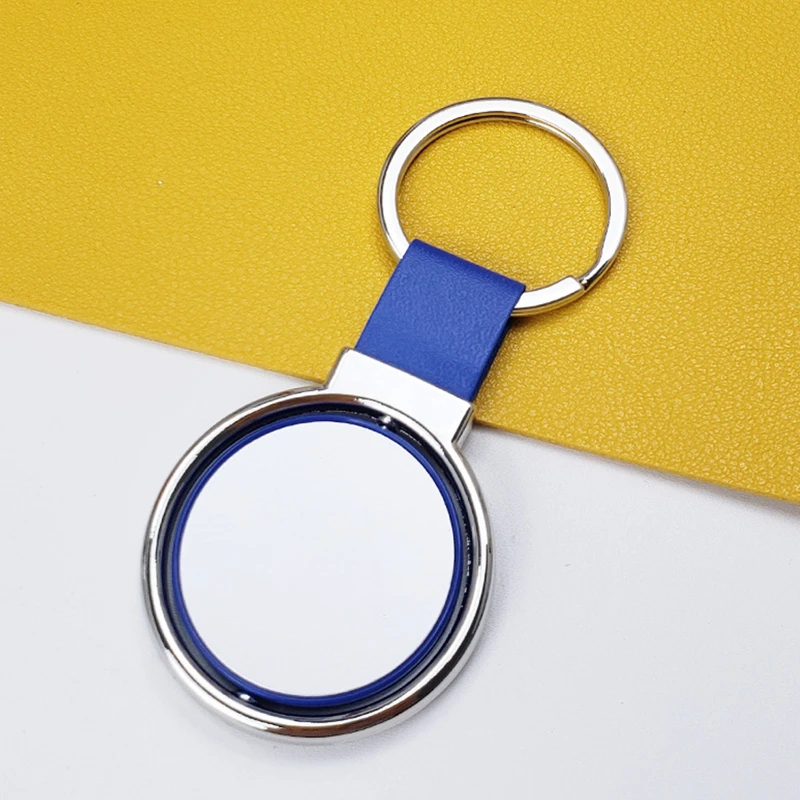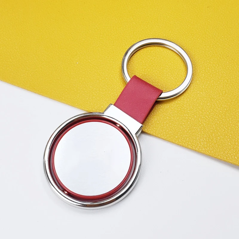 Featuring a sleek metal and leather design, this keychain allows for full 360-degree rotation, providing easy access to your keys. The customizable faceplate is perfect for logos or personal designs, making it an ideal choice for corporate gifts or promotional events. With its elegant leather strap and durable metal frame, this keychain combines luxury and practicality.