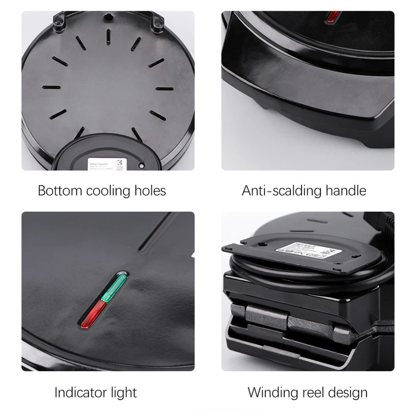 With dimensions of 7.87 by 9.06 inches, this sleek appliance allows you to bake up to seven donuts at a time, ensuring a treat for each family member. Equipped with a 1000-watt power capacity for efficient baking, it features double-sided heating for even cooking and a non-stick coating that promises an easy release of your donuts, ensuring a perfect shape every time. The cooling holes at the bottom prevent overheating, while the anti-scalding handle ensures safety during operation. The maker’s indicator light informs you when your donuts are ready to enjoy, and with its winding reel design, storage is as convenient as it gets.