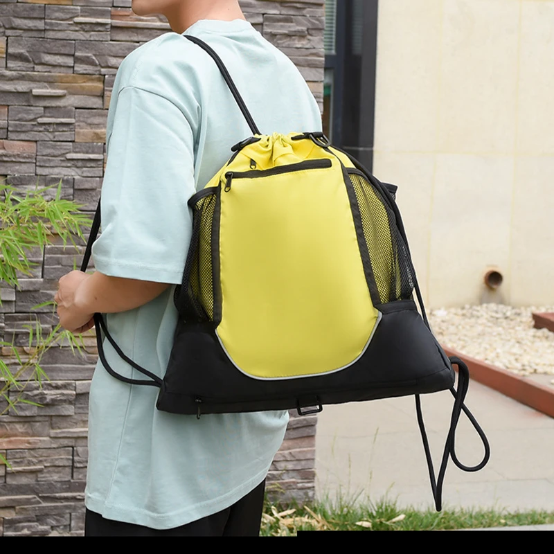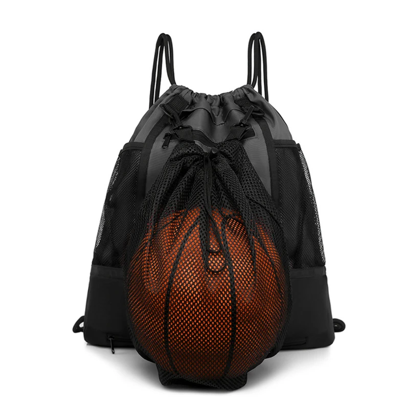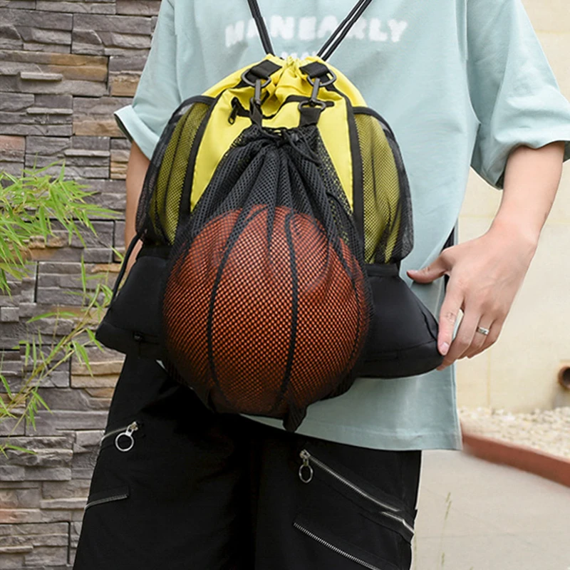 This backpack features a spacious main compartment, side mesh pockets for water bottles or small items, and a detachable back mesh pocket perfect for holding sports equipment such as basketballs, soccer balls, and volleyballs. This lightweight bag is made from durable, waterproof fabric to protect your belongings from the elements. Ideal for gym, training sessions, and outdoor activities, this backpack is a must-have for sports enthusiasts.
