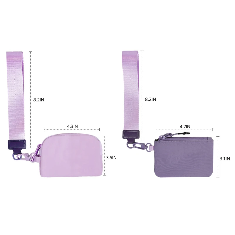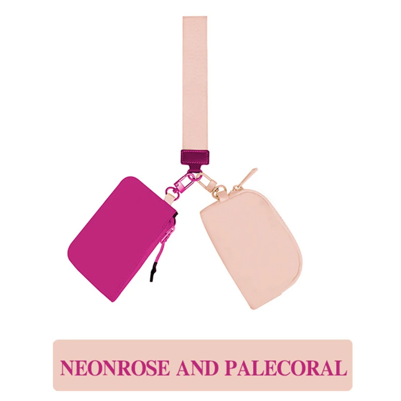 The Dual Pouch Mini Zip Around Wristlet Keychain Wallet is a versatile and stylish accessory designed for convenience and functionality. Made from durable nylon material, this wristlet weighs only 74g, making it lightweight and easy to carry. It features two zippered pouches, perfect for holding cash, cards, keys, and other small essentials. The attached keychain allows for easy attachment to bags or belts, while the wristlet strap ensures secure carrying. Available in a variety of colors, this wallet is ideal for daily use, travel, and outdoor activities, offering both practicality and style. The anti-splash fabric adds an extra layer of protection for your belongings.