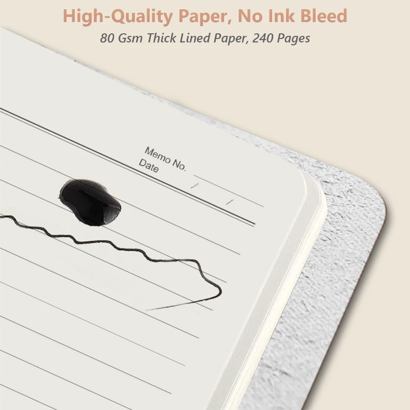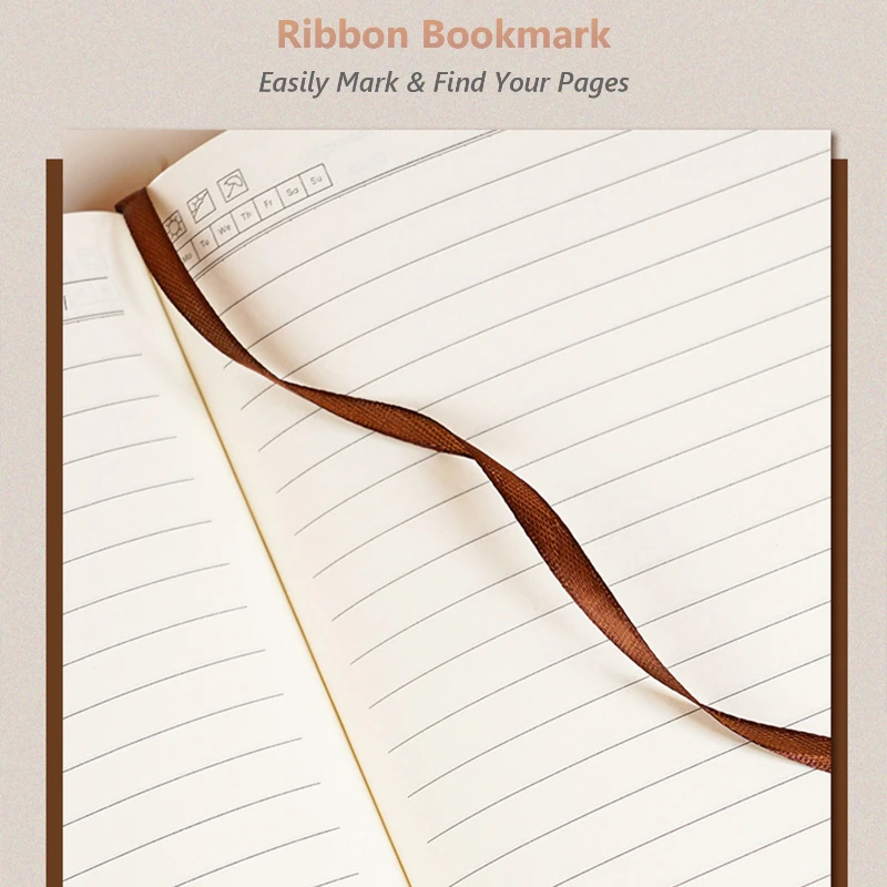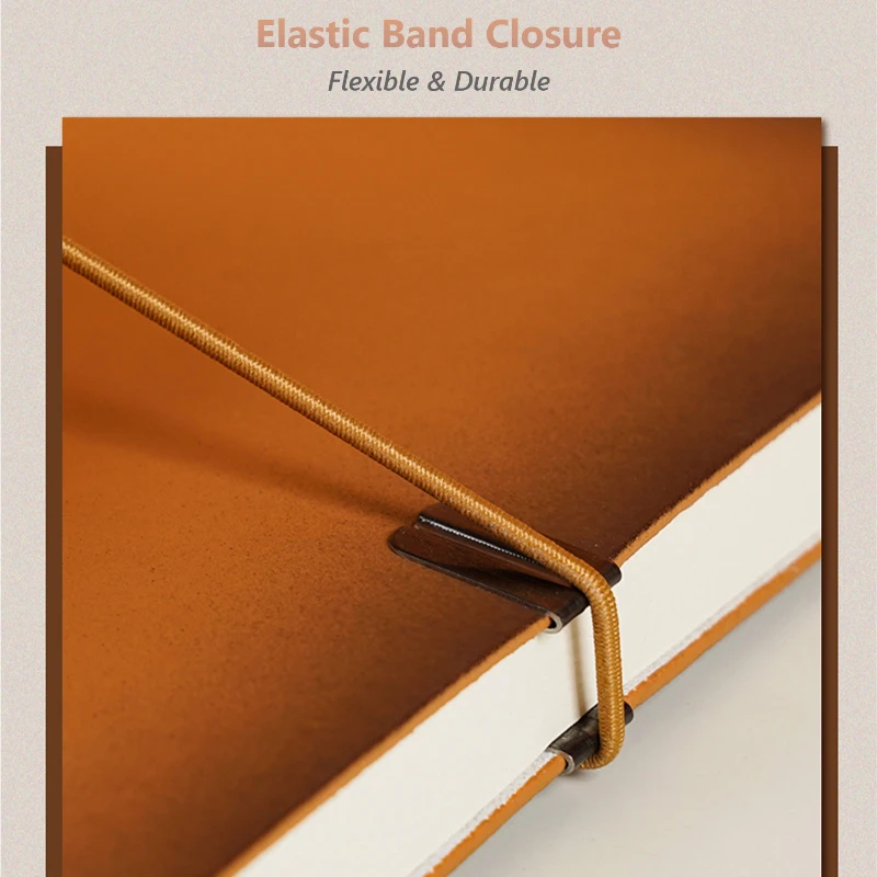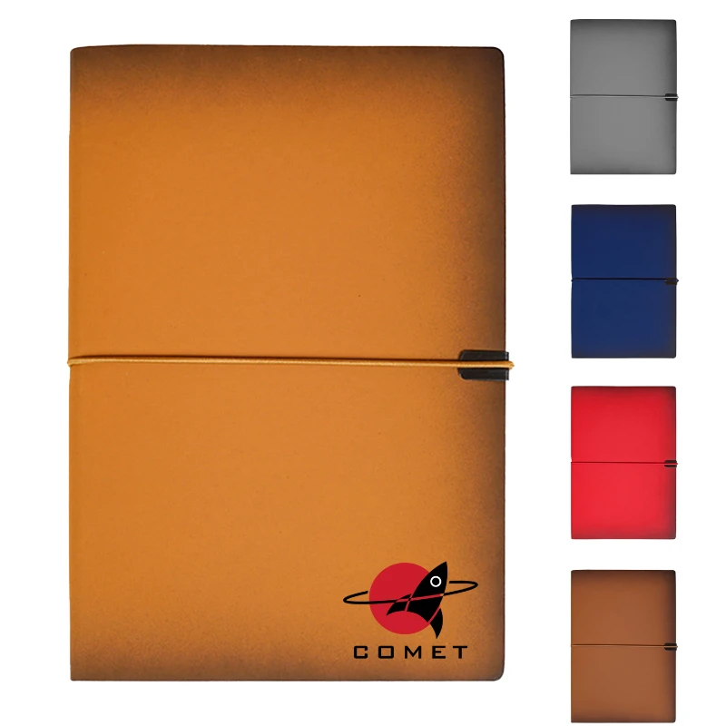 This A5 notebook features a smooth PU leather cover with a simple elastic band closure that keeps your notes secure and organized. It includes 240 pages of 80 GSM thick lined paper, designed to prevent ink bleed and provide a comfortable writing experience. A built-in ribbon bookmark helps you easily find your place. Measuring 8.34 x 5.78 in, it’s compact yet practical for daily journaling, meetings, or travel. Available in multiple classic colors, it’s ideal for business or promotional use.