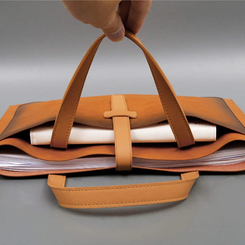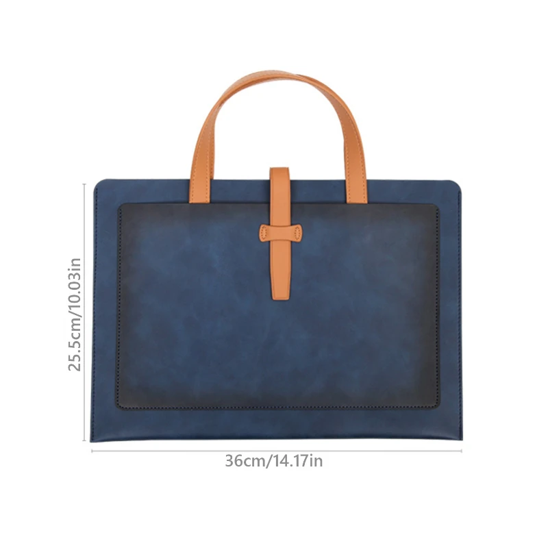 This PU leather business document holder offers a refined and practical design for professionals. Measuring 14.17in x 10.03in, it provides ample space for A4 files, tablets, and notebooks. The durable PU leather exterior is water-resistant and easy to clean, while the secure buckle closure keeps contents protected. Dual carry handles ensure comfort and convenience for daily use. Available in stylish color options, this bag is perfect for office work, business meetings, or conferences, and can be customized with a company logo for promotional events.