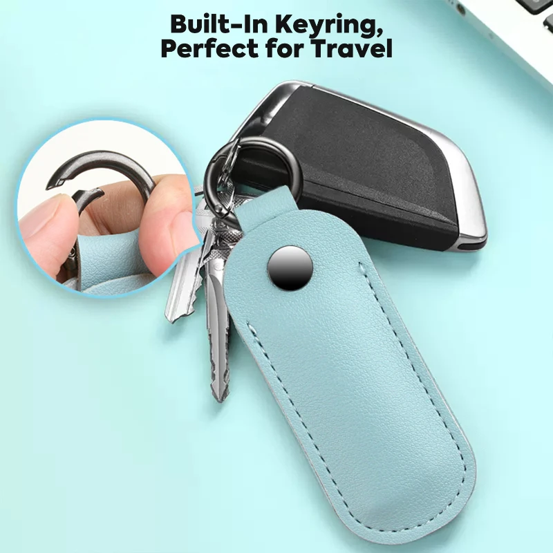 This compact flash drive holder is crafted from durable faux leather, designed to protect your USB drives, security tokens, and memory cards. Featuring a snap-button closure and built-in keyring, it securely holds small tech accessories while keeping them easily accessible. The lightweight design makes it perfect for daily use or travel, ensuring your important items stay organized. Available in a variety of colors, this holder adds a touch of style and functionality to your keychain, making it ideal for professionals or tech enthusiasts.