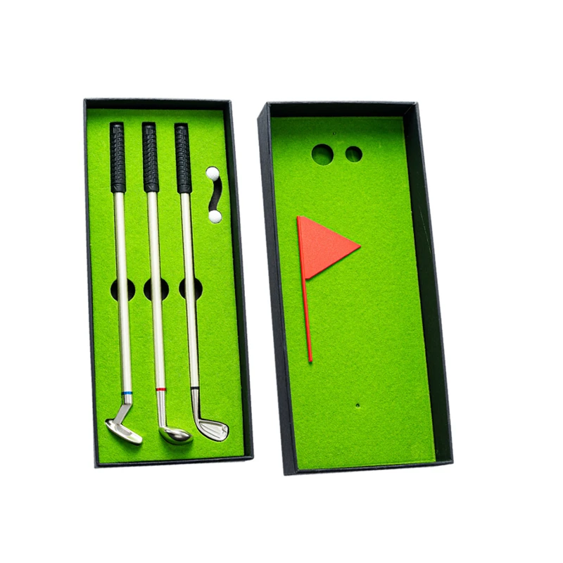 This set includes three golf club pens, each designed to resemble a different golf club driver, iron, and putter. The pens are crafted with attention to detail, from the grip to the clubhead, giving them an authentic and realistic look. These pens not only provide a comfortable writing experience but also showcase your love for the game of golf.