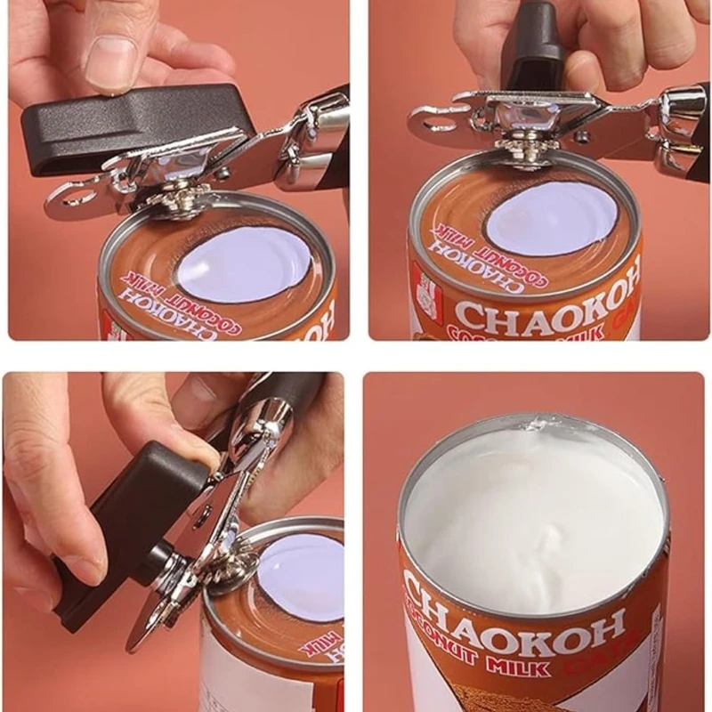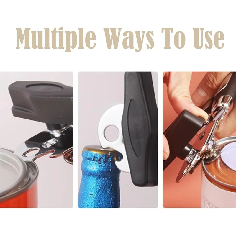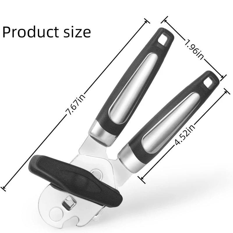 The Ergonomic Can Opener is a robust kitchen utensil designed to simplify the task of opening cans. This manual can opener is approximately 7.67 inches in length with a handle thickness of 1.96 inches, and it features a heavy-duty stainless steel cutting mechanism with a sharp, durable blade for efficient lid removal. It comes with black and silver knot options, each engineered for a comfortable and secure grip, making it easy to twist and open cans without much effort. Safe and hygienic, the EasyTwist can opener is a suitable tool for both home cooks and professional kitchen settings. The product comes in a sleek design, complementing any kitchen aesthetic and is a must-have for easy food preparation.