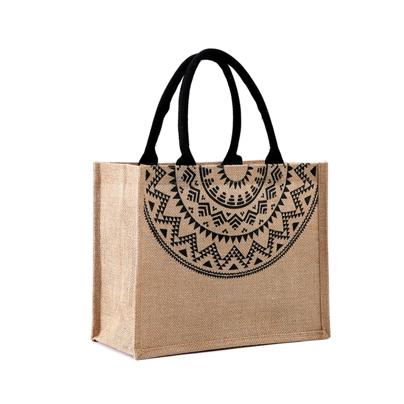 This tote bag is made from natural jute fiber, known for its durability and sustainability. The earthy tones and natural texture of jute give the bag a rustic and organic feel. Whether you’re heading to the beach, farmer’s market, or running errands, this tote bag adds a touch of eco-friendly style to your look.