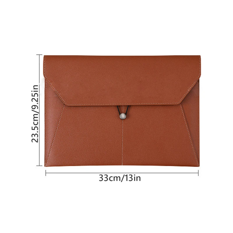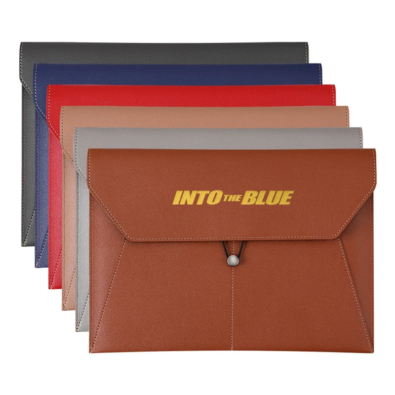 This stylish PU leather business document folder combines functionality with a refined professional look. Measuring 13 × 9.25 inches, it offers a large capacity to store documents, tablets, and stationery neatly. The water-resistant leather material keeps contents protected, while the secure button-and-string closure adds both style and practicality. Available in six elegant colors, this folder is ideal for office, meetings, and travel use, and makes an excellent promotional or corporate gift.