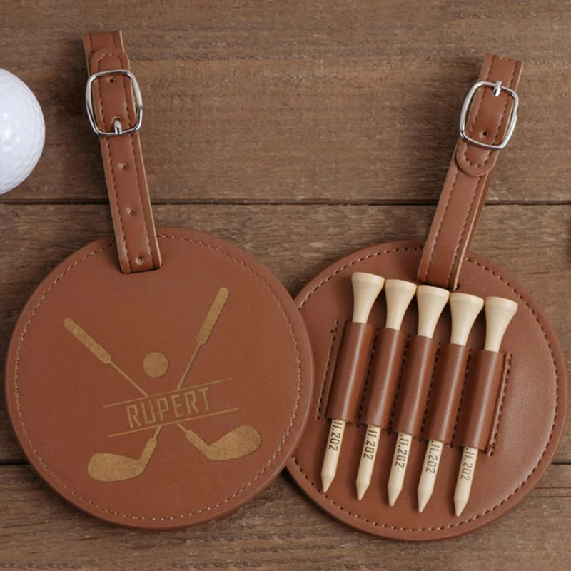 The soft, atear-resistant PU leather is comfortable to the touch and easy to clean, it features a durable leather ring buckle that can securely hold up to 5 golf tees (tees not included). Designed for convenience, the holder can be easily attached to your golf bag, belt, or backpack, ensuring your tees are always within reach. Its adjustable leather buckle adds to its versatility, making it an essential addition to your golfing gear.