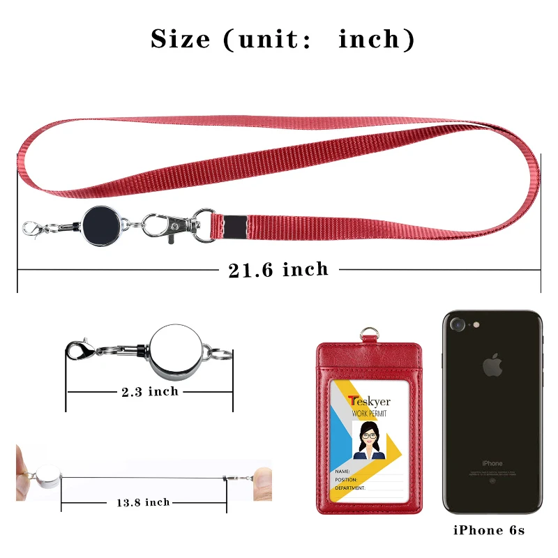 This premium leather badge holder features a retractable lanyard that extends up to 32 inches for easy badge access. It boasts a large clear ID window (2.1×3.2 inches) and a rear card slot, each capable of holding two cards. The holder measures 2.8×4.5 inches, with a lanyard length of 17.7 inches, extendable to 33.5 inches. Constructed from high-quality PU leather, it is complemented by a durable nylon lanyard and a zinc alloy badge reel for longevity. This set is ideal for professionals from various sectors like education, healthcare, and service industries, providing a stylish and functional solution for ID display. The kit includes the leather badge holder, nylon lanyard, and metal badge reel, ensuring a complete set for everyday professional use.