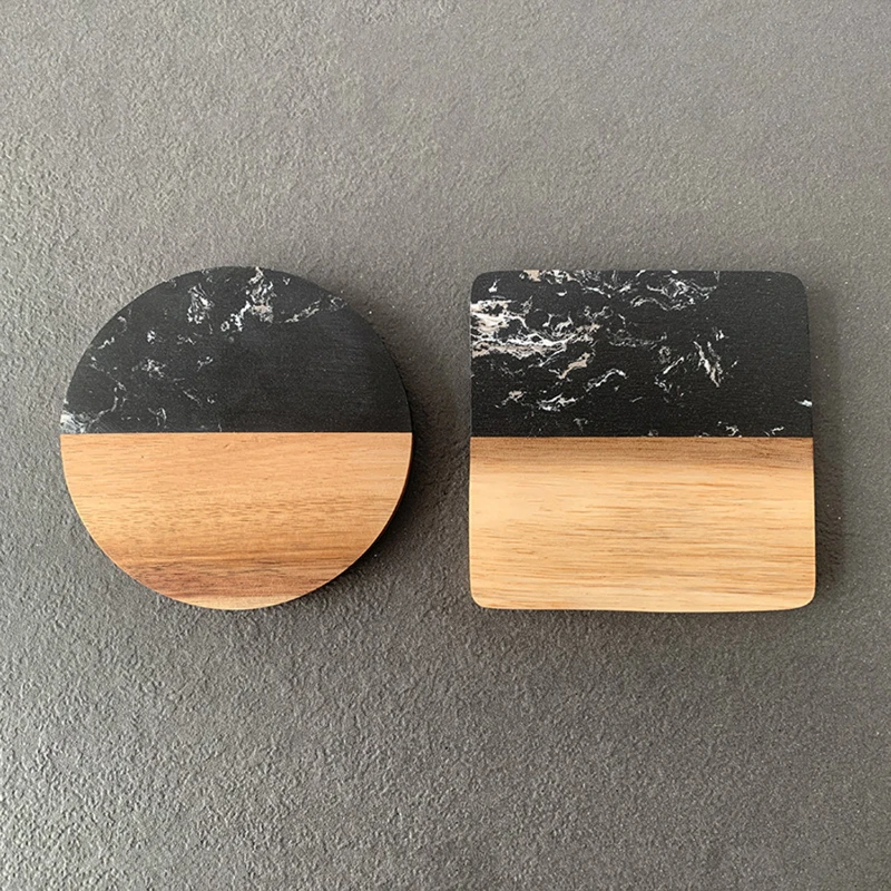 Every single piece comes with clear entirely unique natural marble and wood patterns and it will sit elegantly on your table and give a modern look. Both the two materials from nature are ideal for laser engraving. Your family names, logos, any monograms, texts and sayings can be forever engraved on wood and marble, and make the coasters much more unique!