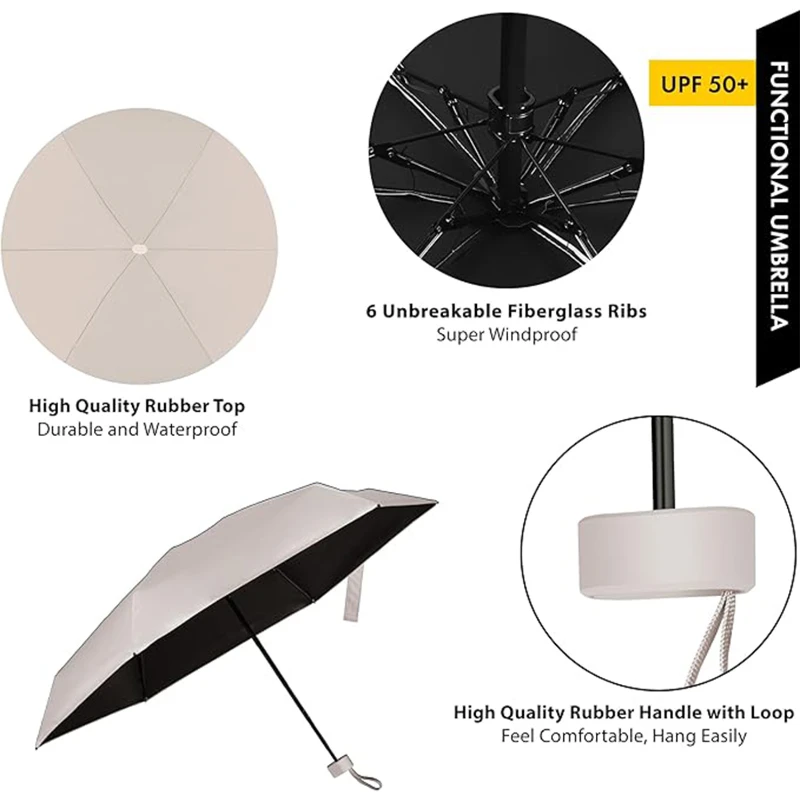 This Mini Travel Umbrella combines style with practicality, designed to fit seamlessly into your everyday life. With its ultra-lightweight of just 7.8 ounces and compact 5.9-inch length when folded, it’s perfectly portable, ready to slip into a makeup bag, pocket, or backpack. Its sturdy 6-rib metal structure is engineered to withstand flipping inside out, providing robust windproof protection during heavy rain. The advanced UV-resistant fabric efficiently blocks 99% of harmful sun rays, making it a dual-purpose sun and rain mini umbrella. Alongside its waterproof capabilities, the umbrella features a quick-drying coating, ensuring you can store it soon after use. Available in an array of vibrant colors, this umbrella is a thoughtful and colorful gift for loved ones.