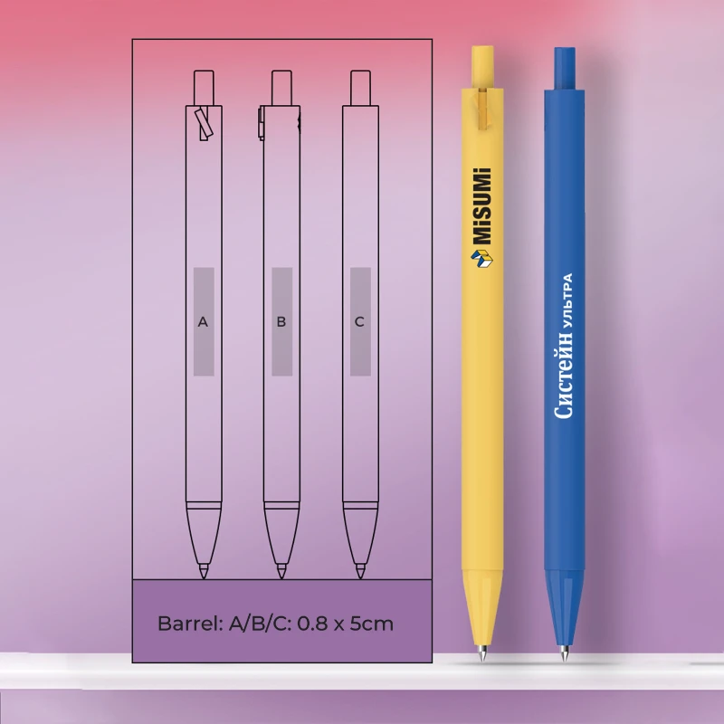 The Minimal Clipless Click Gel Pen features a clean, clipless body design that creates a smooth, uninterrupted imprint area for branding. Made from lightweight ABS, it includes a reliable click-action mechanism and a 0.5 mm black gel ink refill for consistent, smooth writing. The matte barrel offers a comfortable grip for daily use, while the simple internal structure allows easy refill replacement. Measuring 5.71 in. long, this pen is available in a wide range of modern colors to match different branding needs. Ideal for offices, schools, events, trade shows, and promotional giveaways.