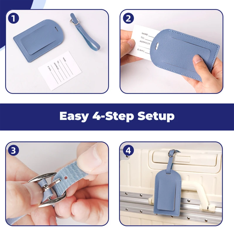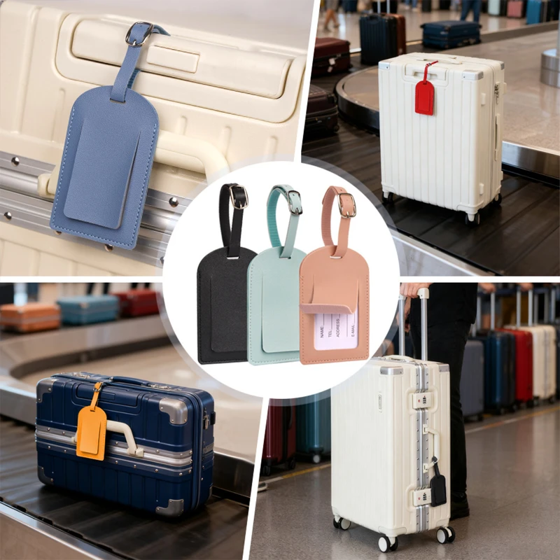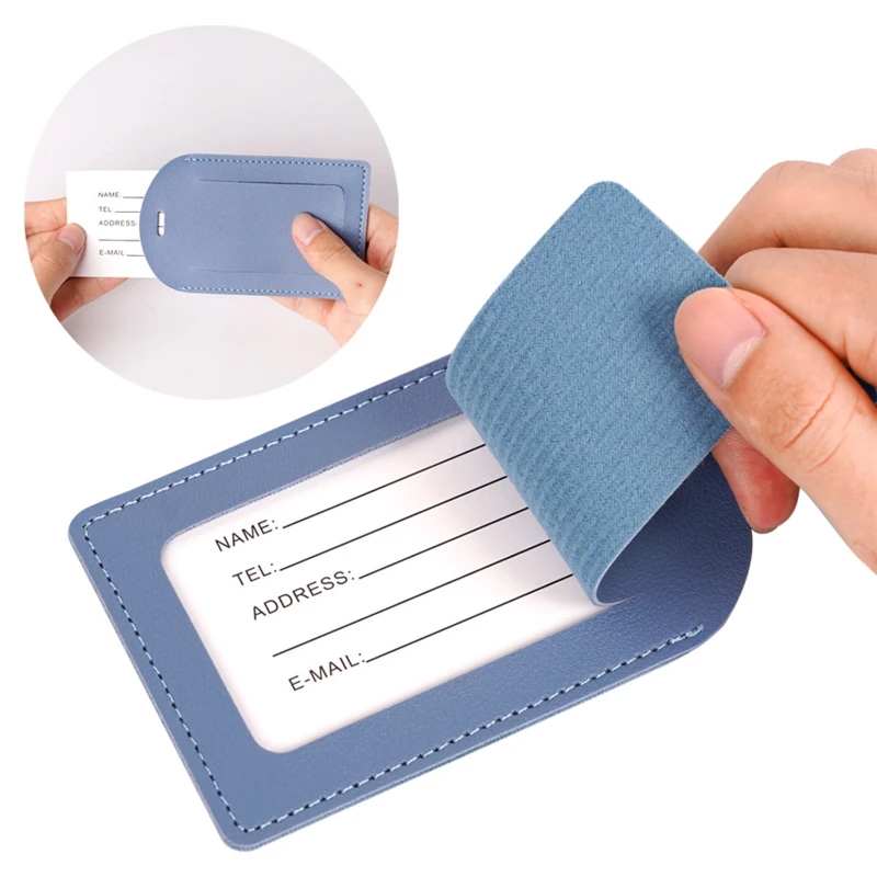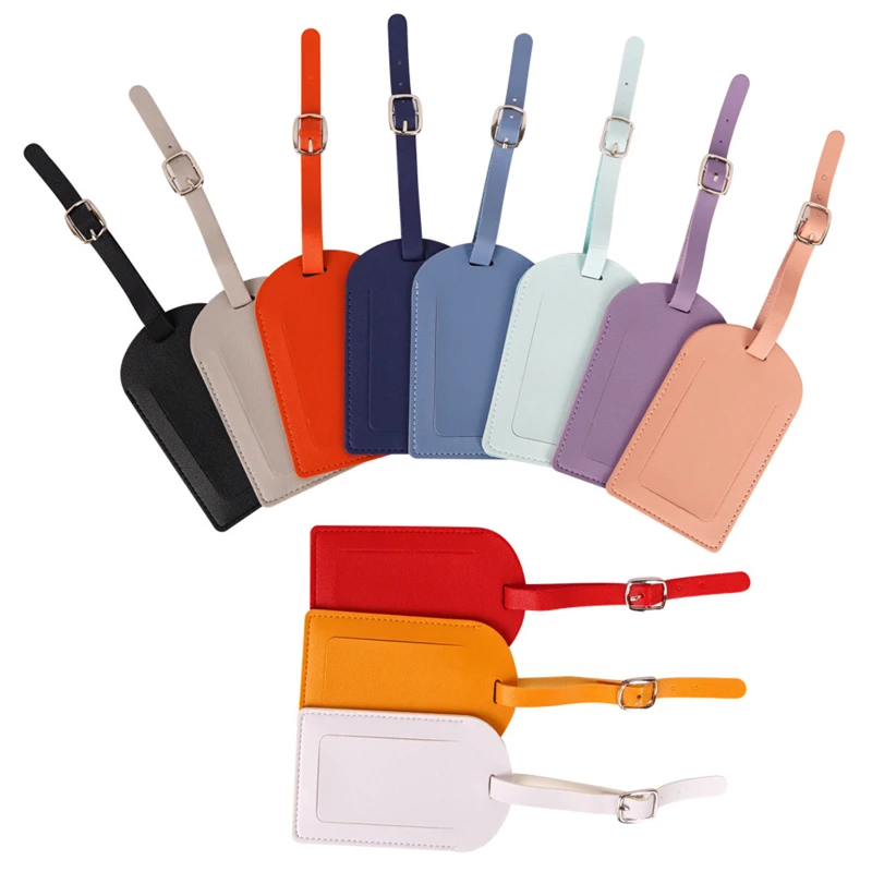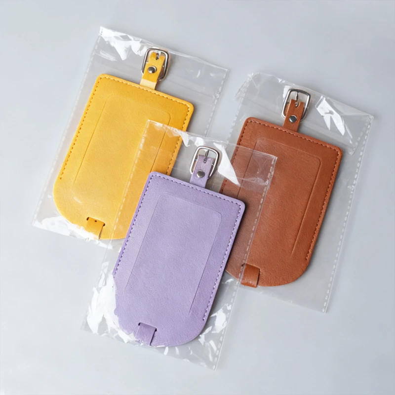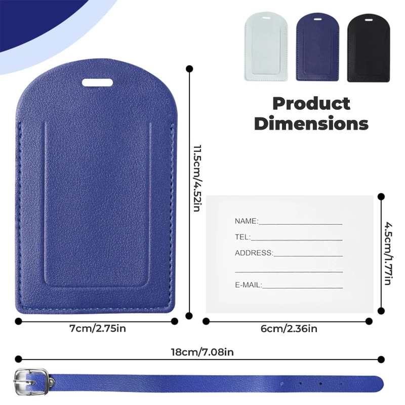 This classic luggage tag is made from smooth Vegan Leather with a soft, flexible feel and durable stitching. The hidden flap design protects personal information while allowing quick access to the ID card when needed. An adjustable strap with metal buckle securely attaches to suitcases, backpacks, or carry ons. Overall tag size is 4.5 x 2.75 inches, with an included ID card sized 2.36 x 1.77 inches and an 7.1 inch strap. Ideal for checked luggage, business travel, and branded giveaways.