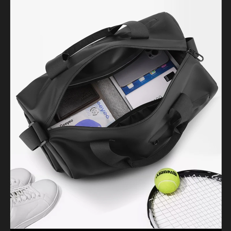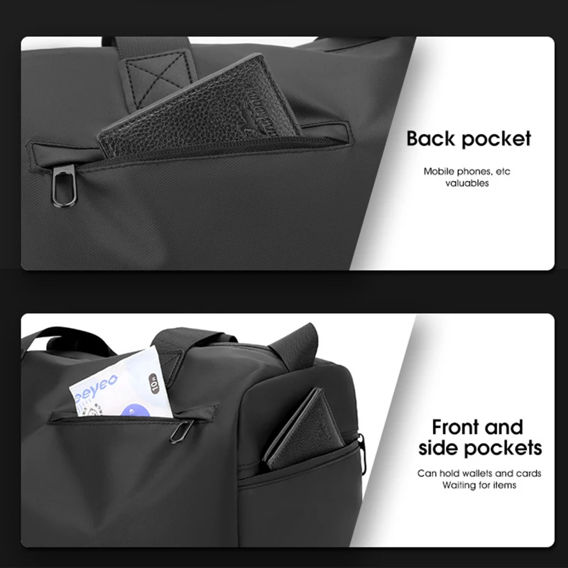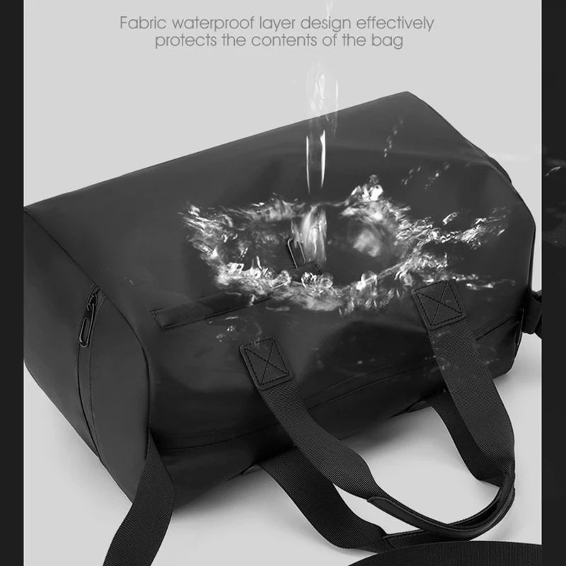 This versatile Waterproof Travel Duffel Bag is designed with convenience and style in mind. Crafted from durable polyester and coated with a protective film, this bag is built to withstand the rigors of daily use. The bag features a spacious main compartment with a wet-dry separation pocket, perfect for organizing your essentials. It also includes a separate shoe compartment to keep your footwear isolated from other items. With multiple pockets for easy access to your valuables, this bag is ideal for short trips, gym sessions, or daily commutes. The adjustable shoulder strap allows for comfortable crossbody or shoulder carrying, making it a practical choice for anyone on the go.