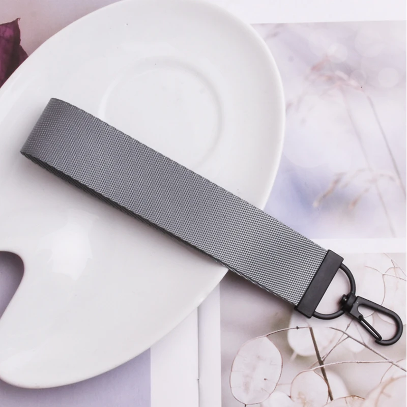 Made from durable nylon material, this keychain features a metal clasp that securely holds your keys or attaches to bags and other accessories. Measuring approximately 7.9 inches in length, it offers ample space for custom printing, making it an ideal promotional item for businesses or personal gifts. Perfect for school bags, luggage, or as a decorative accessory, this keychain combines functionality with modern aesthetics.