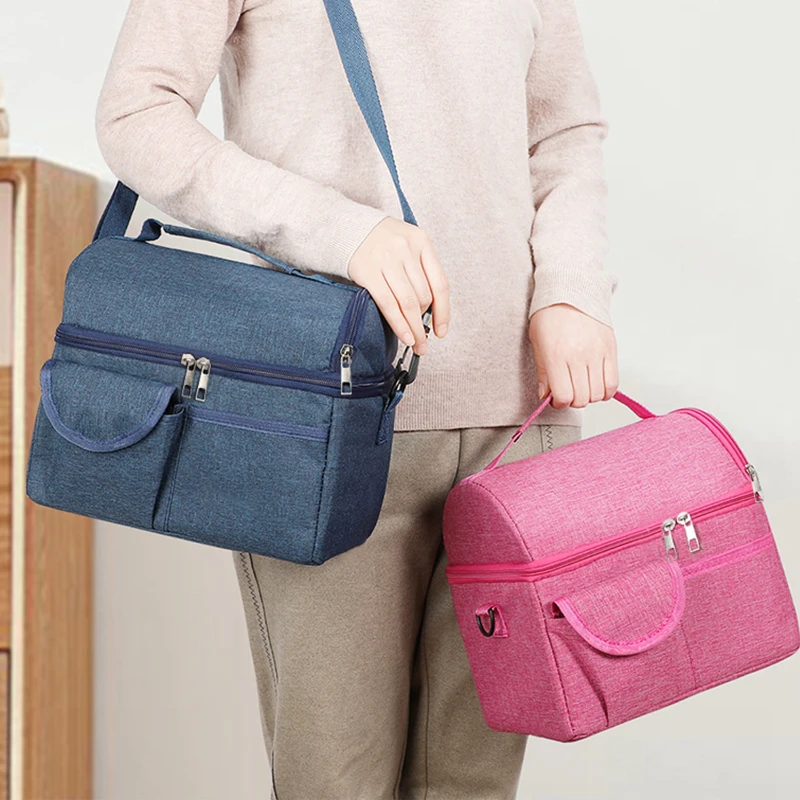 Measuring approximately 8.07 x 6.10 x 7.28 inches, this stylish and practical bag is designed to keep your meals fresh and at the perfect temperature. The thick aluminum foil lining ensures superior insulation, while the durable Oxford fabric exterior provides water and oil resistance. The bag features a comfortable handle and adjustable shoulder strap for convenient carrying. An additional front pocket allows for easy storage of utensils and small items. Available in black, gray, pink, and blue, this lunch bag is perfect for work, school, or outdoor activities.