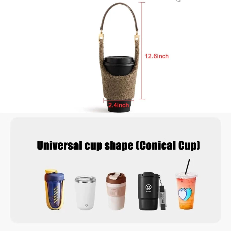 his lightweight sleeve, weighing just 41.2 grams, is designed from soft fleece material to provide insulation and warmth for your drink. Available in three elegant colors to suit your preference, the carrier boasts a secure closure and a durable metal clasp that ensures ease of handling. Its universal design accommodates various cup shapes, making it an essential for any conical cup you prefer. With dimensions standing at 12.6 inches tall and 2.4 inches wide, this cup carrier merges practicality with a sleek design, perfect for those on-the-go sips in colder weather.