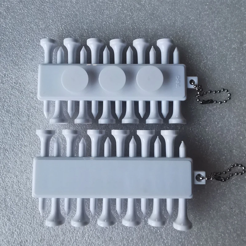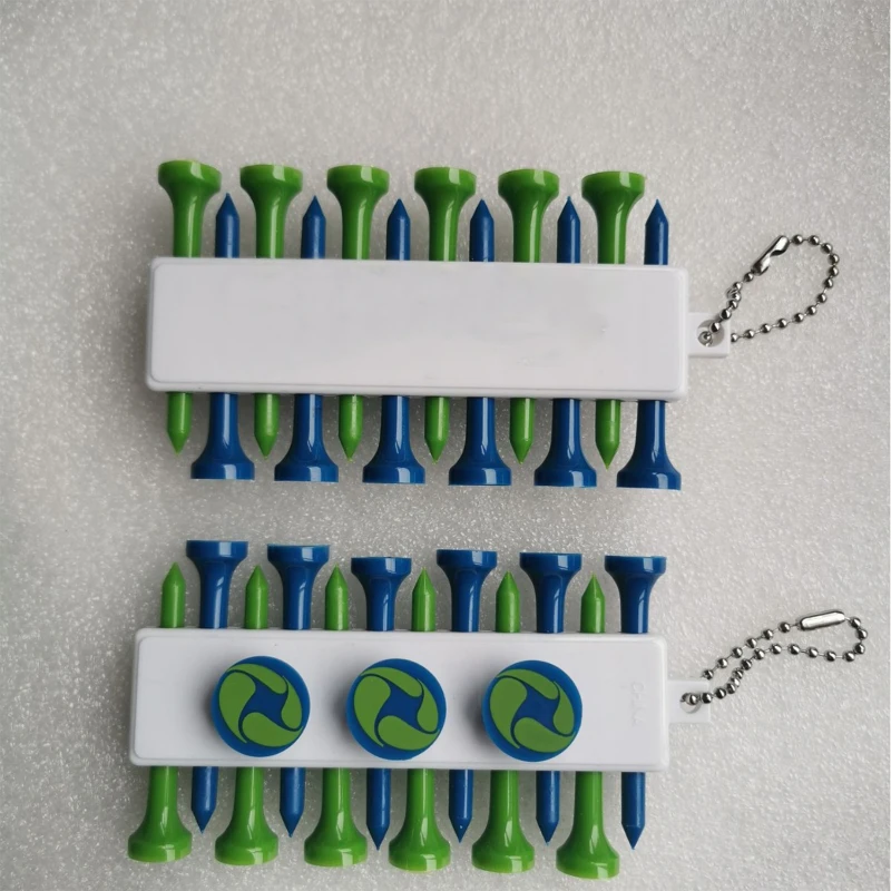 Made from durable ABS material, this holder keeps your tees organized and easily accessible. The compact design includes a keychain and a sturdy metal hook, allowing you to attach it to your golf bag or belt. It features a ball pedestal and detachable ball markers, providing added convenience on the course. With the capacity to hold 12 tees, this organizer ensures you are always prepared for your next game. Ideal for promotional gifts, it can also be customized with your logo.