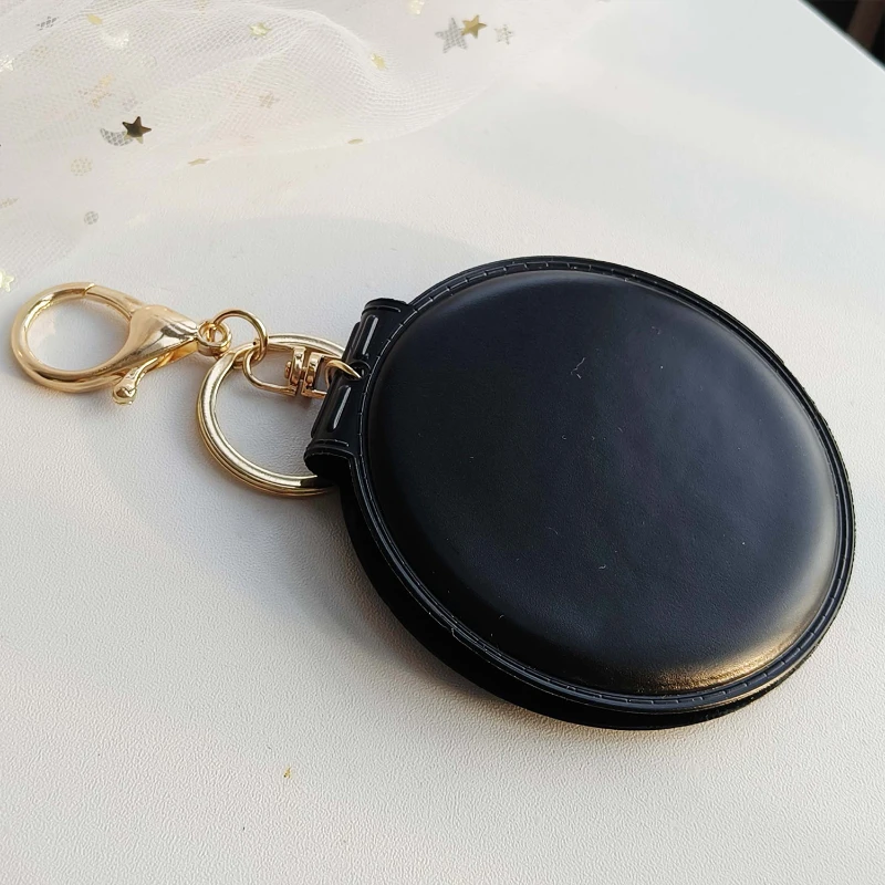 Encased in a sleek leather cover, this small round mirror features a convenient folding design and a keychain attachment, making it easy to carry and access wherever you are. Ideal for students, travelers, and anyone who values practicality and style, this compact mirror is a must-have addition to your daily essentials.