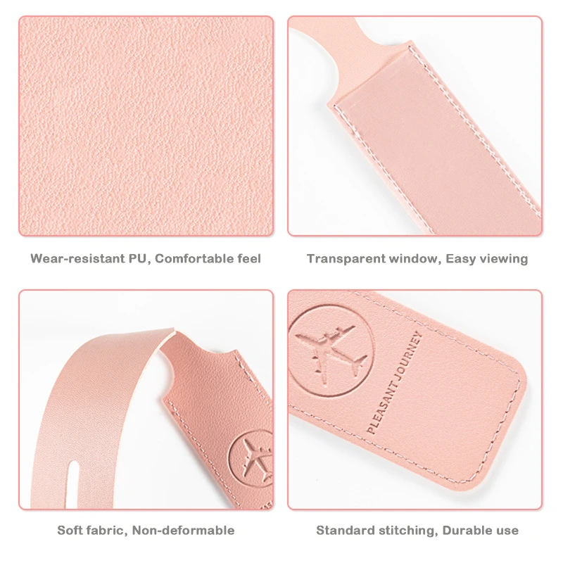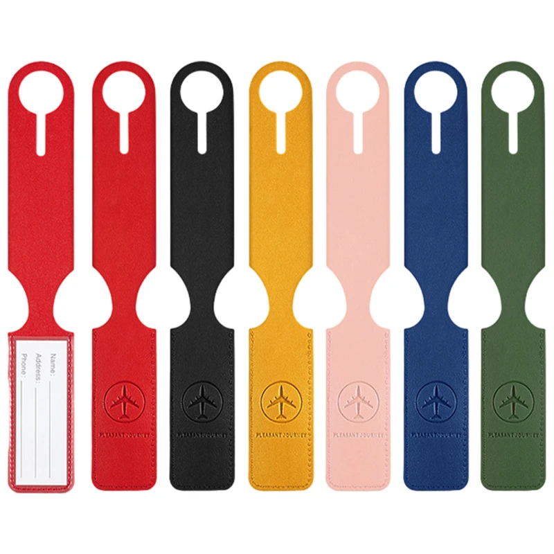 These sleek PU leather luggage tags come with an elastic cord for secure attachment to your baggage. Measuring 4.92 x 3.15 inches and weighing only 0.03 pounds, these tags offer a perfect blend of style and functionality. Each tag features a transparent PVC window to display personal information and a slot on the back for additional items like cards. Available in multiple vibrant colors, these tags are ideal for ensuring your luggage is easily identifiable during travel.