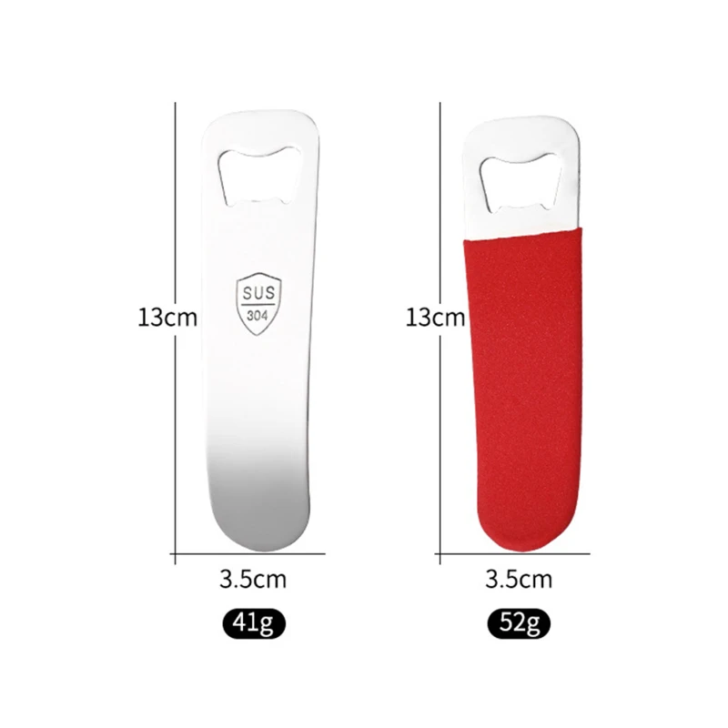 The Premium Stainless Steel Bottle Opener is a must-have tool for any beverage enthusiast. Crafted from high-quality SUS 304 stainless steel, this bottle opener is designed for durability and ease of use. It features a sleek, ergonomic design that fits comfortably in your hand, ensuring a secure grip every time. The opener is available in 3 versions: a plain 410 stainless steel finish, a 304 stainless steel finish with the marking “SUS 304”, and one with a protective grip in black or red, providing additional comfort and style. Measuring 5.12 inches in length and 1.38 inches in width, it is compact and easy to store. With a weight of 1.44 ounces (plain) and 1.83 ounces (with grip), it is lightweight yet robust. Perfect for use at home, bars, restaurants, or as a promotional gift.
