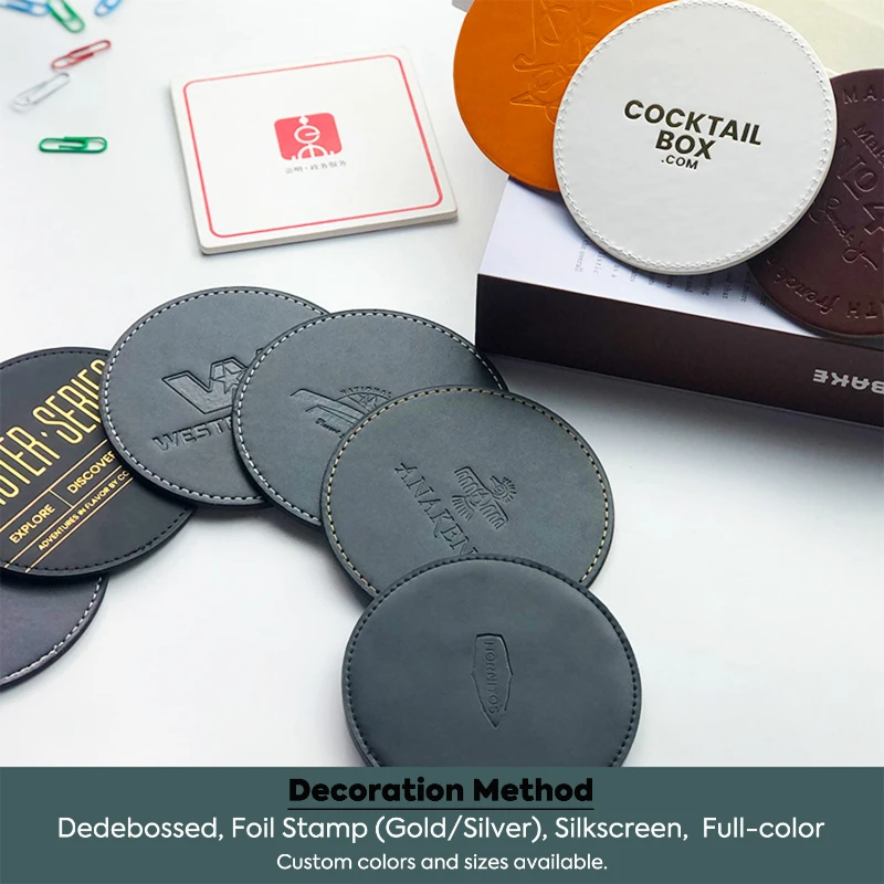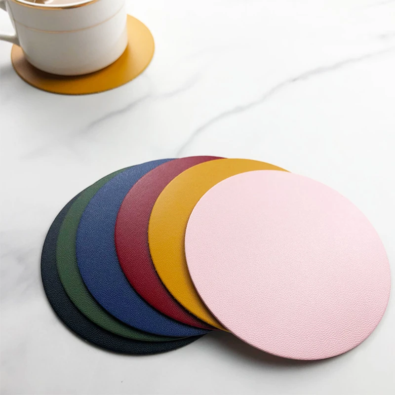 Designed to be water-resistant, non-slip, and heat-insulating, these coasters are perfect for protecting surfaces from spills and heat. Measuring 3.9 inches in diameter and weighing just 0.02 lbs each, they are easy to store and ideal for both home and office use. Available in dark blue, green, red, yellow, pink, and black, they add a touch of elegance to any decor. Suitable for coffee cups, tea mugs, and cold beverages, these coasters make an excellent promotional item or thoughtful gift.