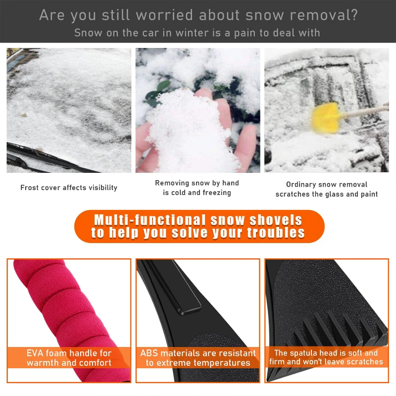 Face the winter head-on with the Ice Scraper, a tool designed for efficiency and ease of use. This robust ice scraper measures 28 cm in length with a 9.5 cm wide scraping edge, perfect for clearing ice and snow from your vehicle’s windows and surfaces. The ergonomic design includes a comfortable, non-slip EVA foam grip, ensuring a secure hold even in the coldest conditions. The durable ABS plastic scraper is tough on ice but gentle on glass, featuring teeth for breaking through thicker ice and a flat edge for a clean sweep. Lightweight at only 60 grams, it’s an essential tool for any driver during winter months.