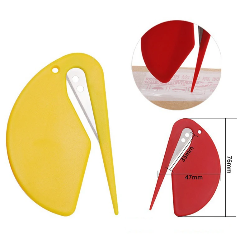 This letter opener is made of plastic and stainless steel blade. Stainless blade stays razor-sharp through hundreds of cuts and will last a lifetime. Light weight and small size design are for easy to carry, convenient for put in pocket or bag, ideal for a business trip. Safe and efficient tool for opening letters, Easily slice through envelopes like warm butter, and open your mail in a jiffy.